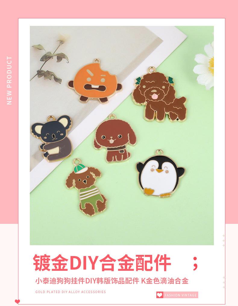 Teddy dog pingente diy estilo coreano acessórios de jóias K gota de ouro liga de óleo pequeno pingente pulseira pingente