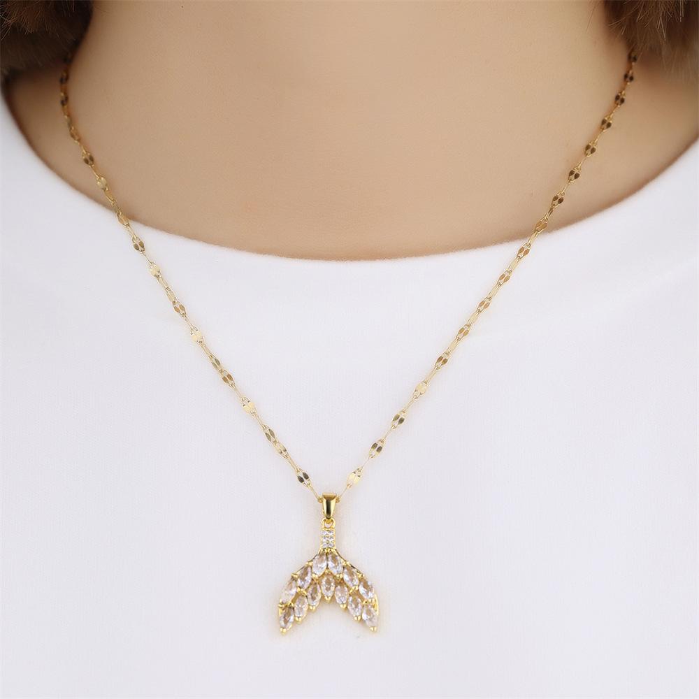 Colar Feminino All-match Nicho Design Clavícula Corrente Ins Estilo Micro-incrustado Zircão Rabo de Peixe Pingente Colar Joia Feminina
