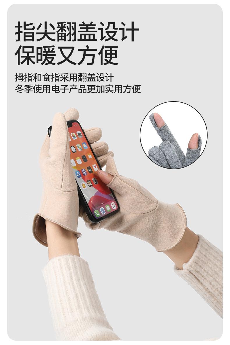 Derong Outono e Inverno Novo Quente Inverno Luvas Femininas Forradas com Lã Ponta do Dedo Capa Flip Tela Sensível ao Toque Inverno Estudantes