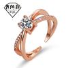 Anel Liso Cruzado anel de diamante feminino design de nicho anel aberto ajustável personalidade simples vento frio anel