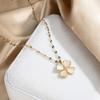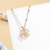 Colar de Pétalas em Forma de Coração com Pingente de Liga de Cobre, Trevo de Quatro Folhas Galvanizado com Ouro Real, Corrente de Aço Titânio para Clavícula, Design Exquisito Estilo Ins