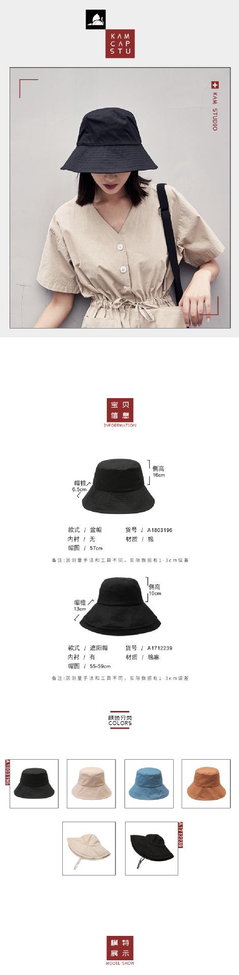 Chapéu de pescador preto puro de algodão sem impressão Outono e inverno feminino Estilo coreano All-match Chapéu de sol estilo japonês Chapéu de sol feminino Chapéu de sol na moda