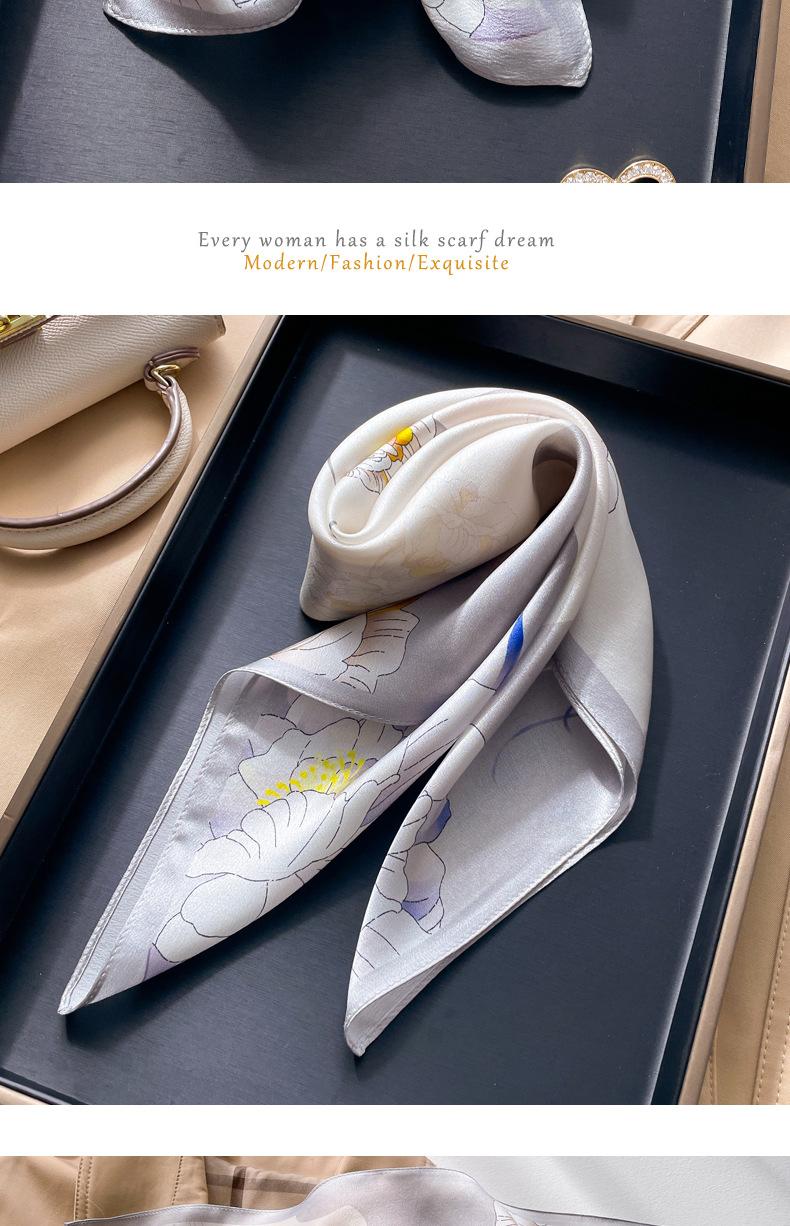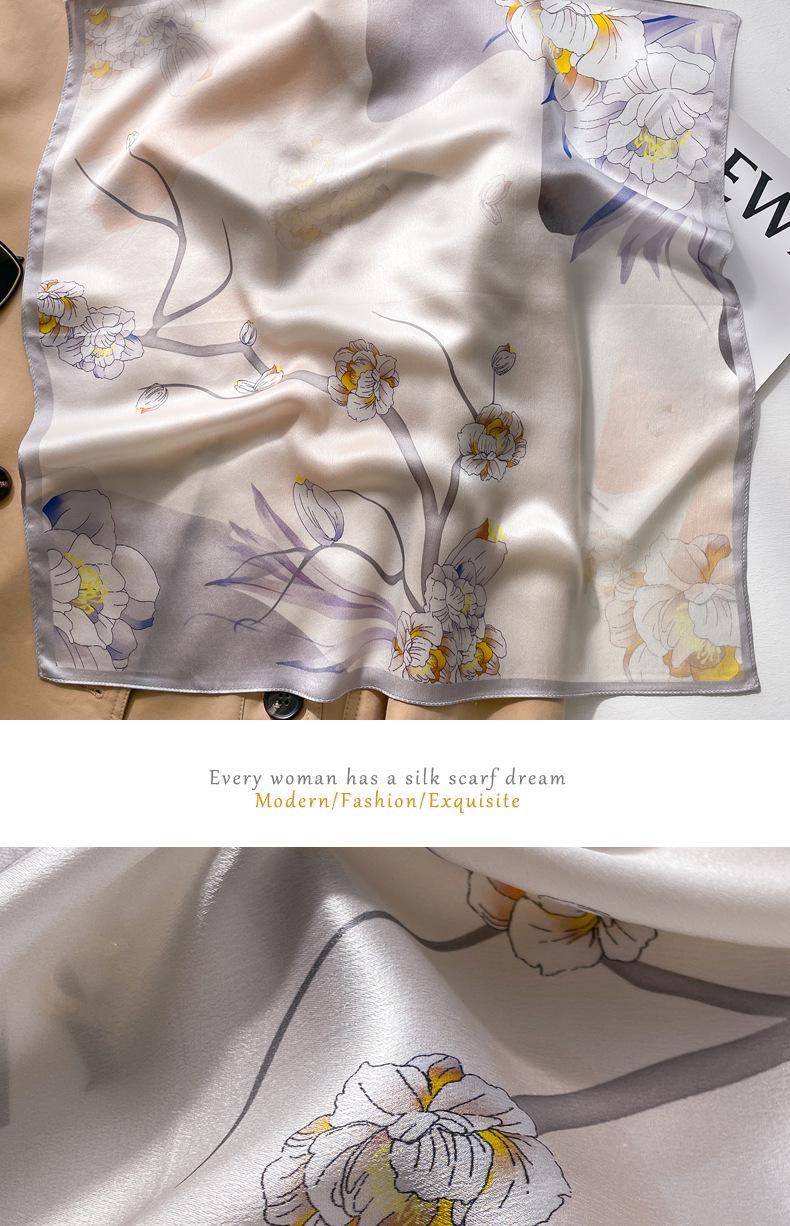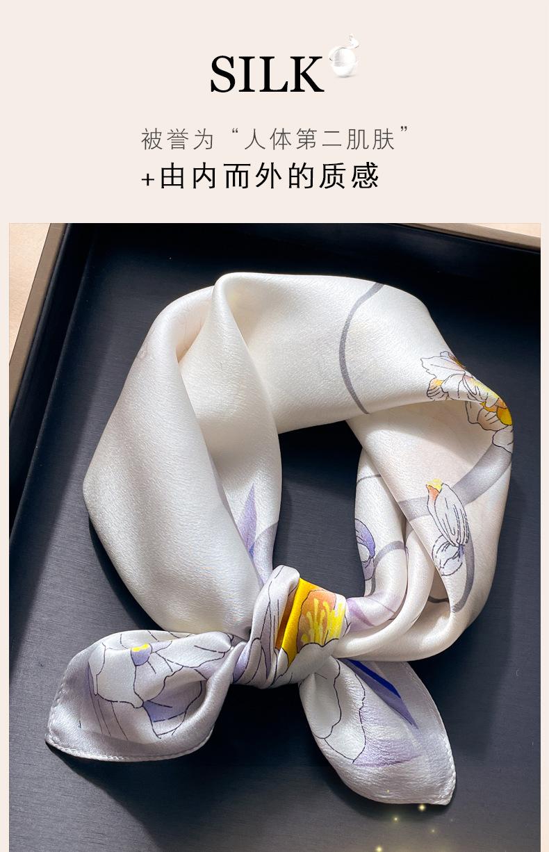 Branco pequeno floral Hangzhou Silk Silk pequeno lenço quadrado das mulheres primavera e outono verão versátil cachecol de seda amoreira lenço cachecol cachecol