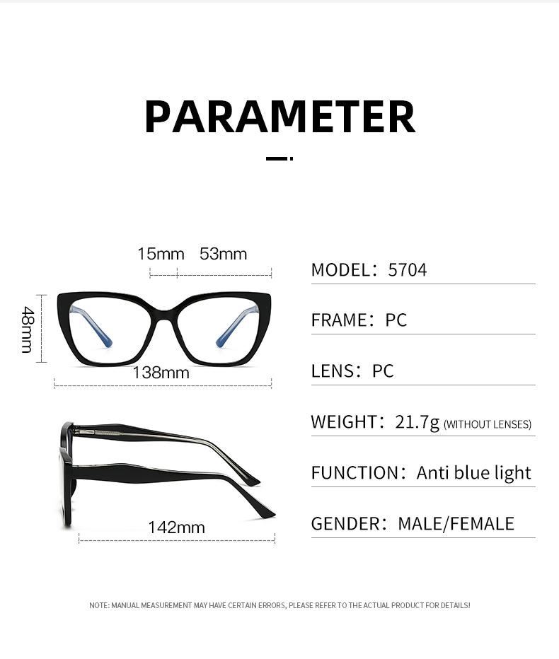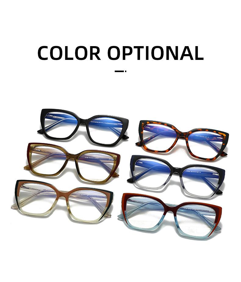 Novos óculos anti-luz azul femininos PC núcleo perna moda retro placa cor lente plana com óculos espelho 5704