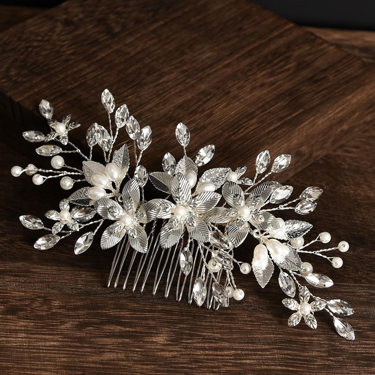 Europeu e Americano Transfronteiriço Noiva Handmade Alloy Flower Vidro Strass Pérola Pente de Cabelo Headwear Acessórios de Vestuário de Casamento Pente