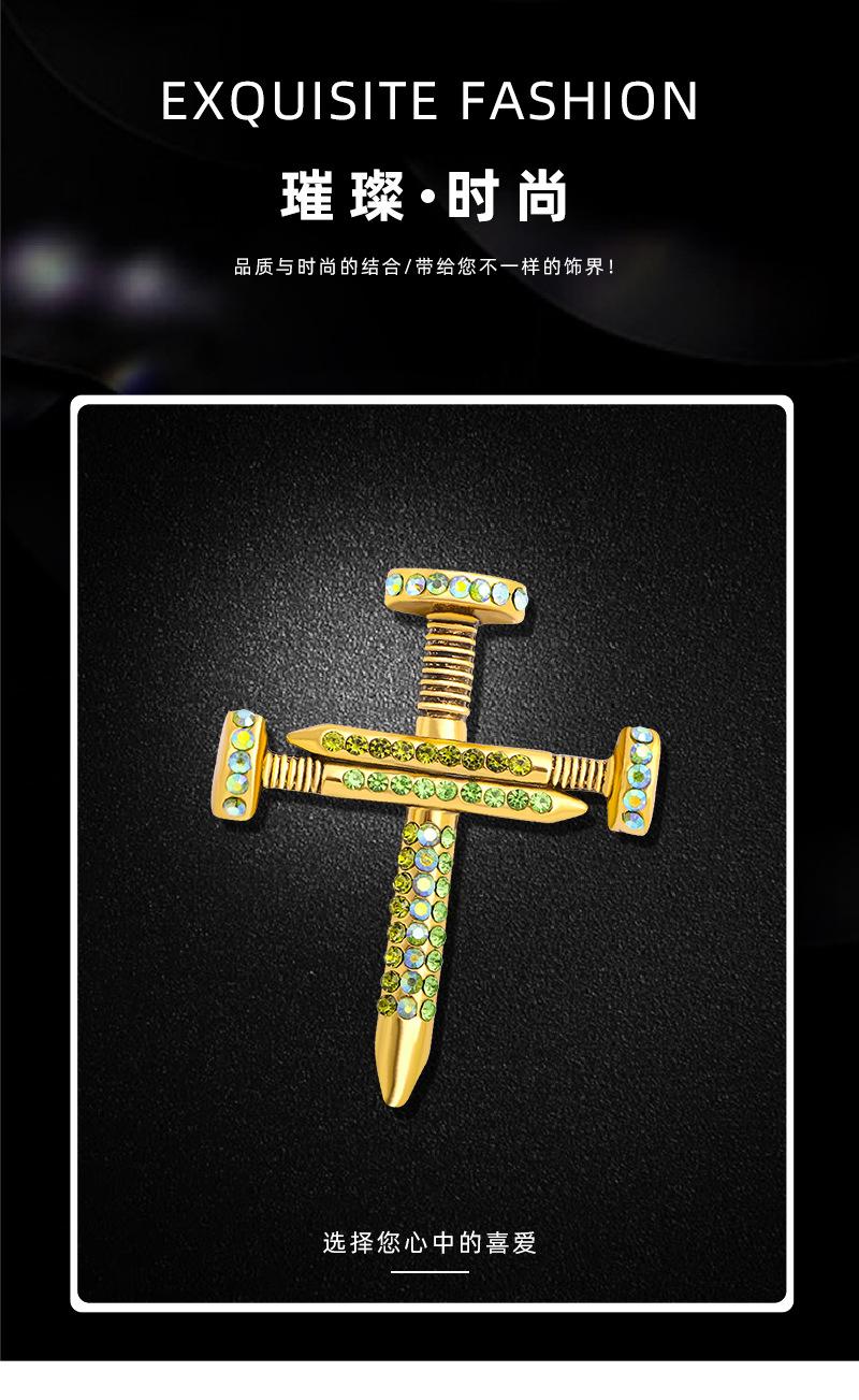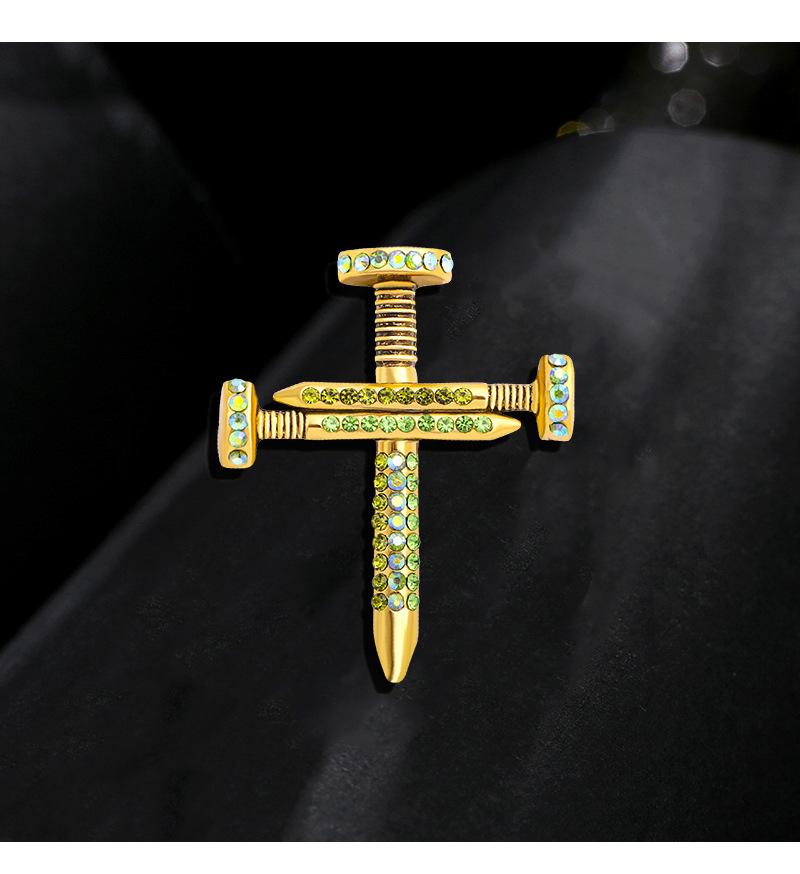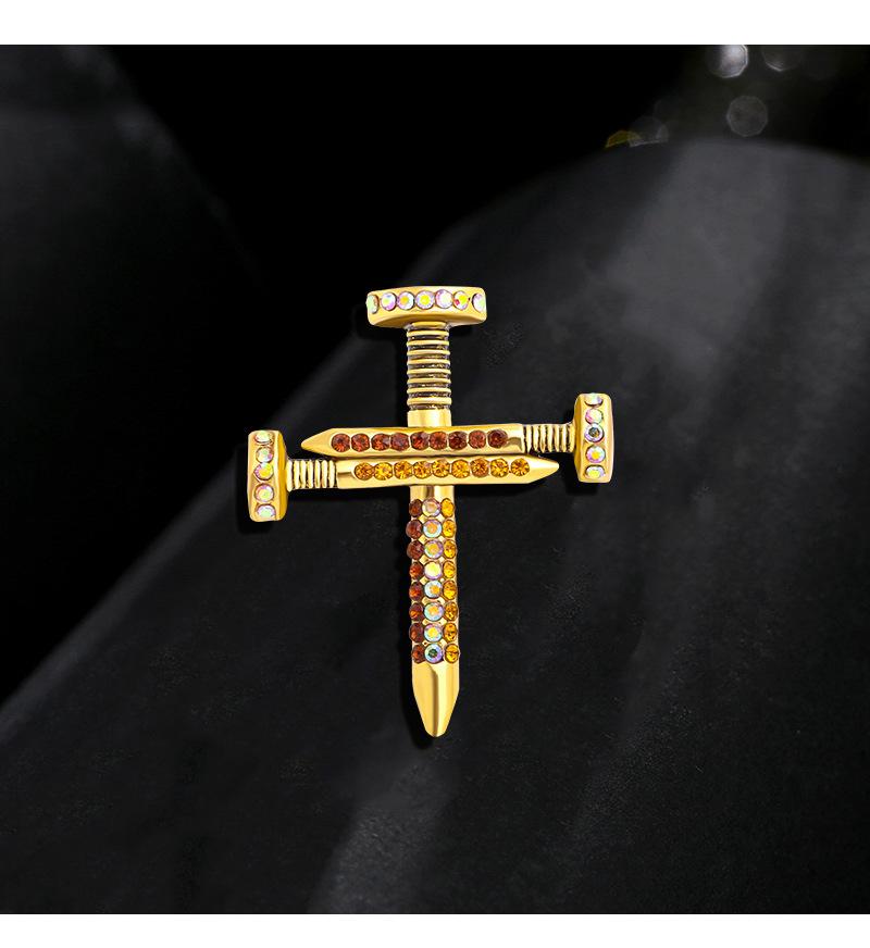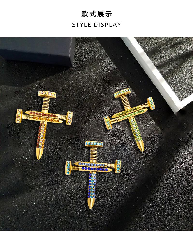Novo broche de cruz europeia e americana Hip Hop Full Diamond Nail Corsage Strass Diamante Cruz Borda Broche Alloy Pin