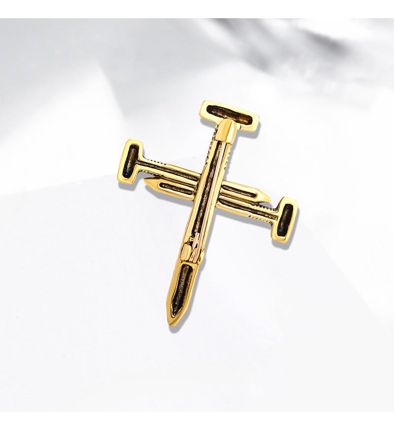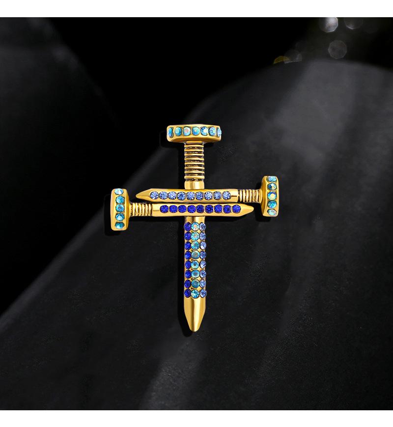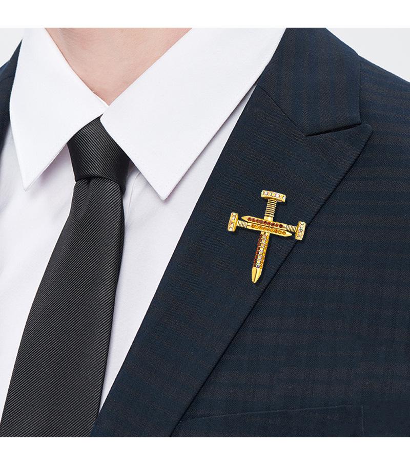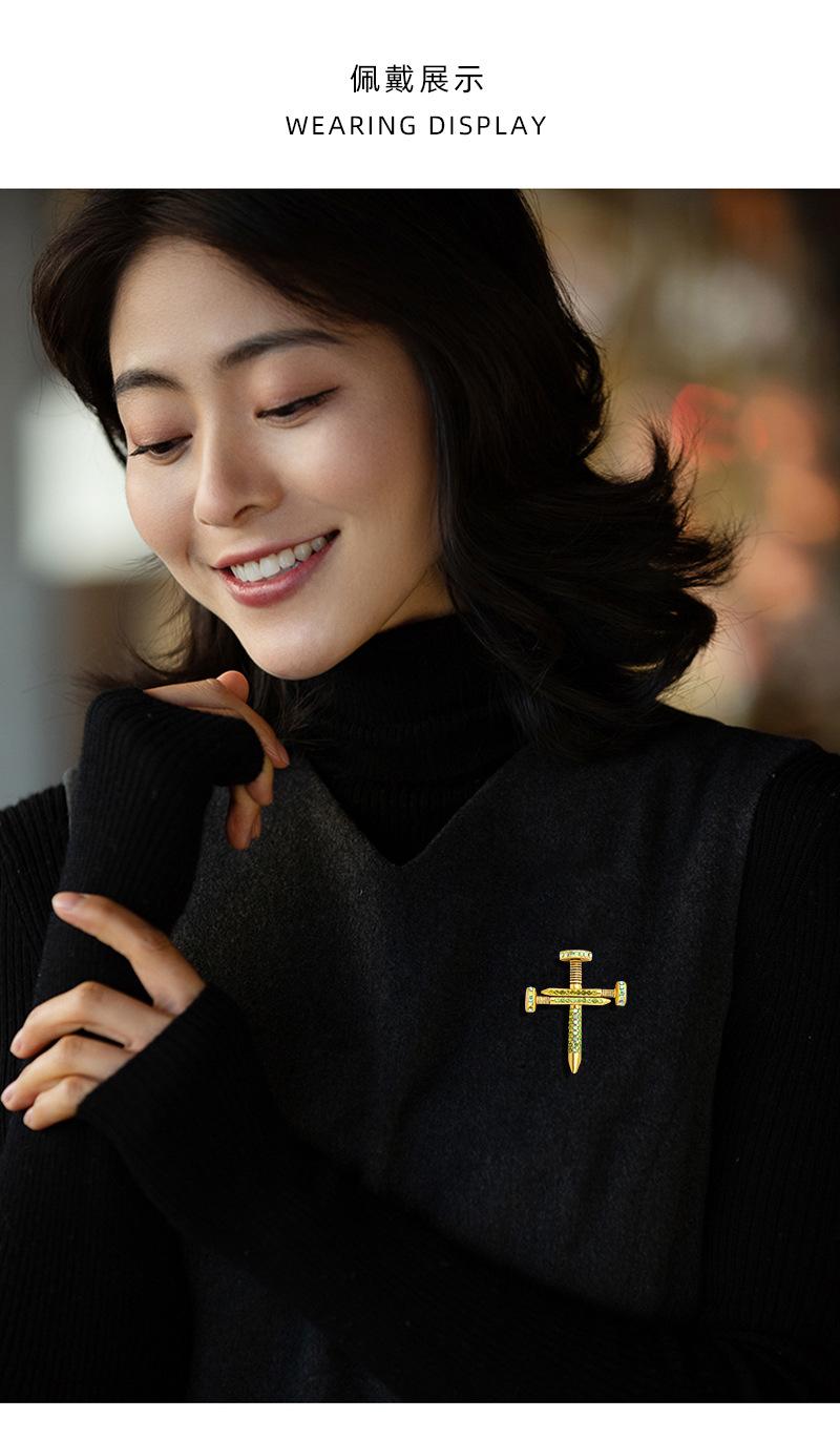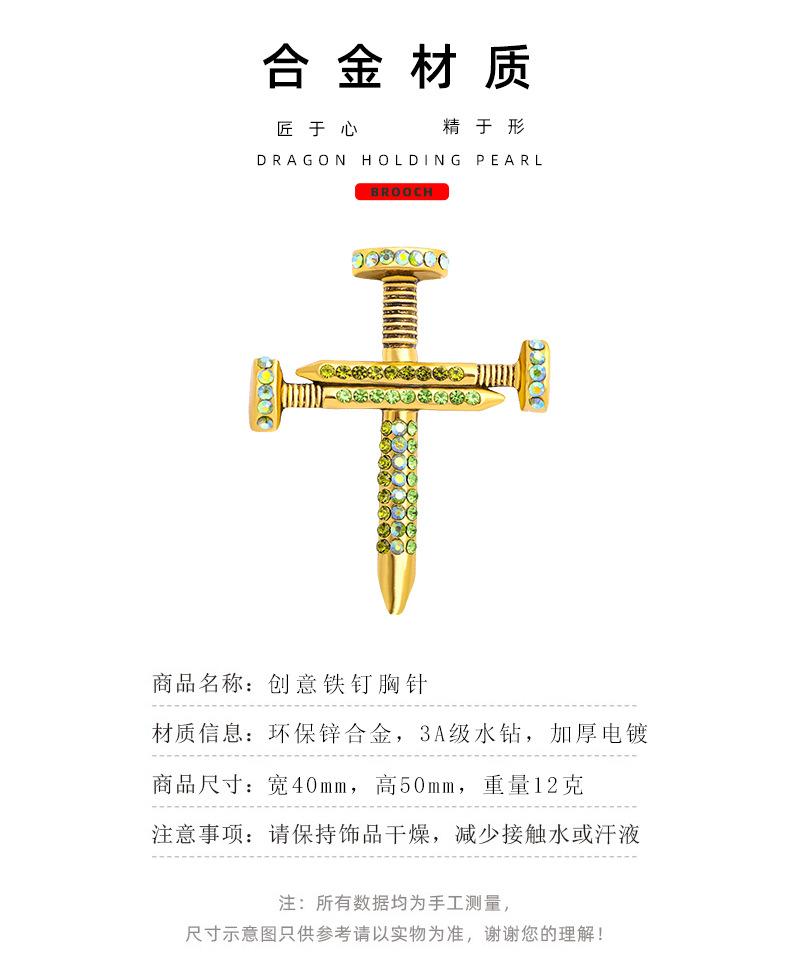 Novo broche de cruz europeia e americana Hip Hop Full Diamond Nail Corsage Strass Diamante Cruz Borda Broche Alloy Pin