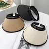 Primavera e verão novo chapéu vazio de proteção solar feminino chapéu de sol de praia à beira-mar chapéu de palha com capuz de rosto de aba grande