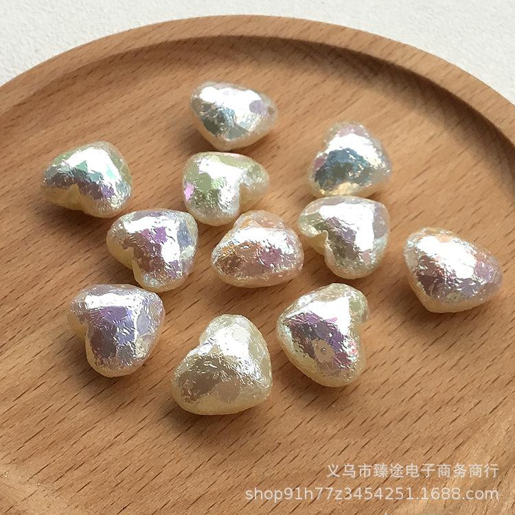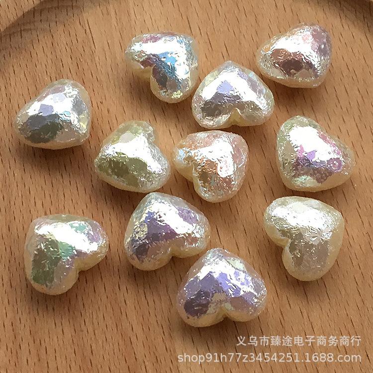 Pérola Imitada Colorida Perolada Multifacetada Plissada Coração Pêssego Coração Pêssego Acessórios de Resina DIY Brincos Material de Enfeite para Cabeça Atacado
