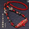 Tailândia Buda marca corda thangka Wenwan incrustado boêmio vermelho preto multi-tesouro elemento pesado pingente feito à mão corda corrente