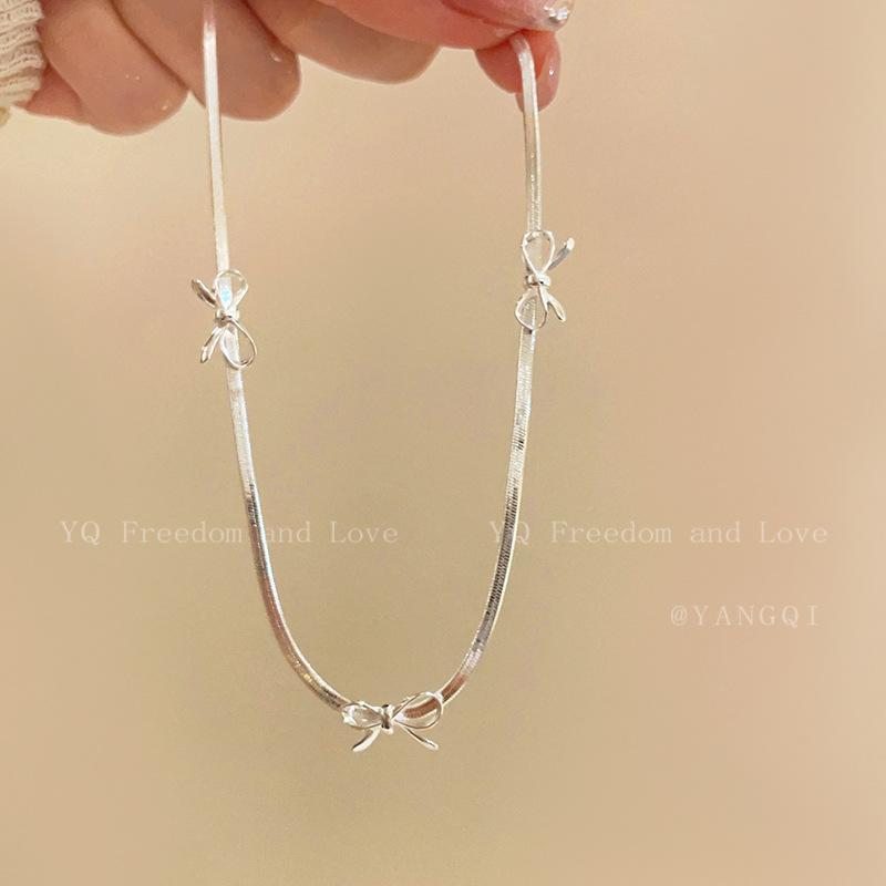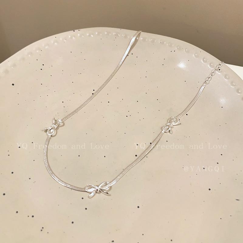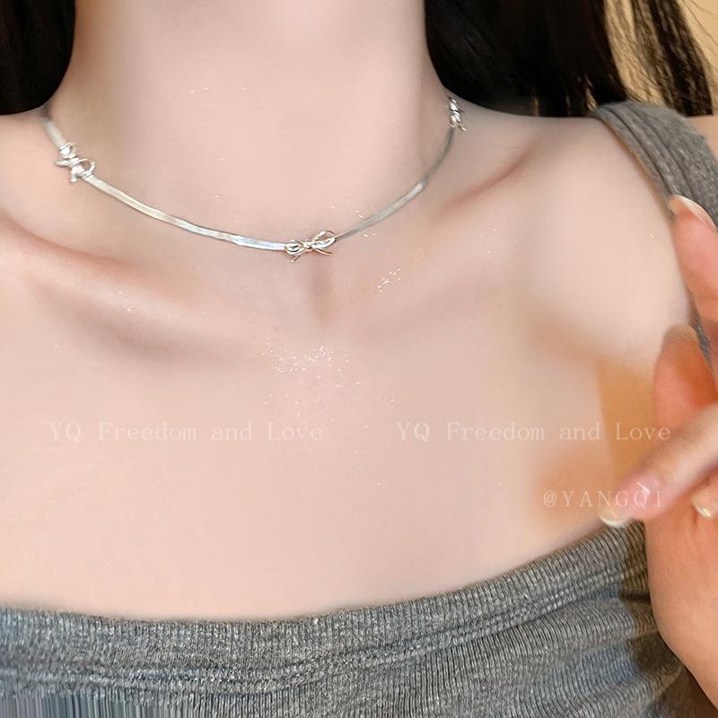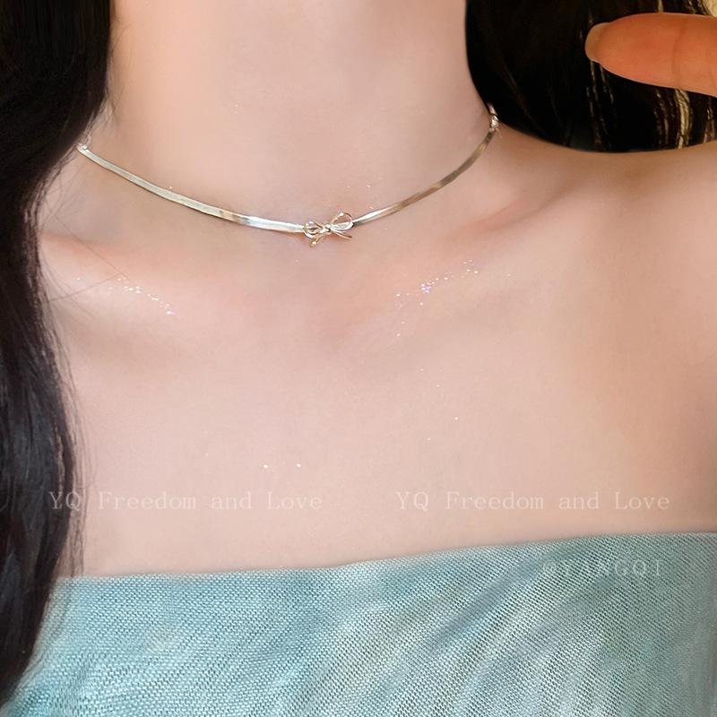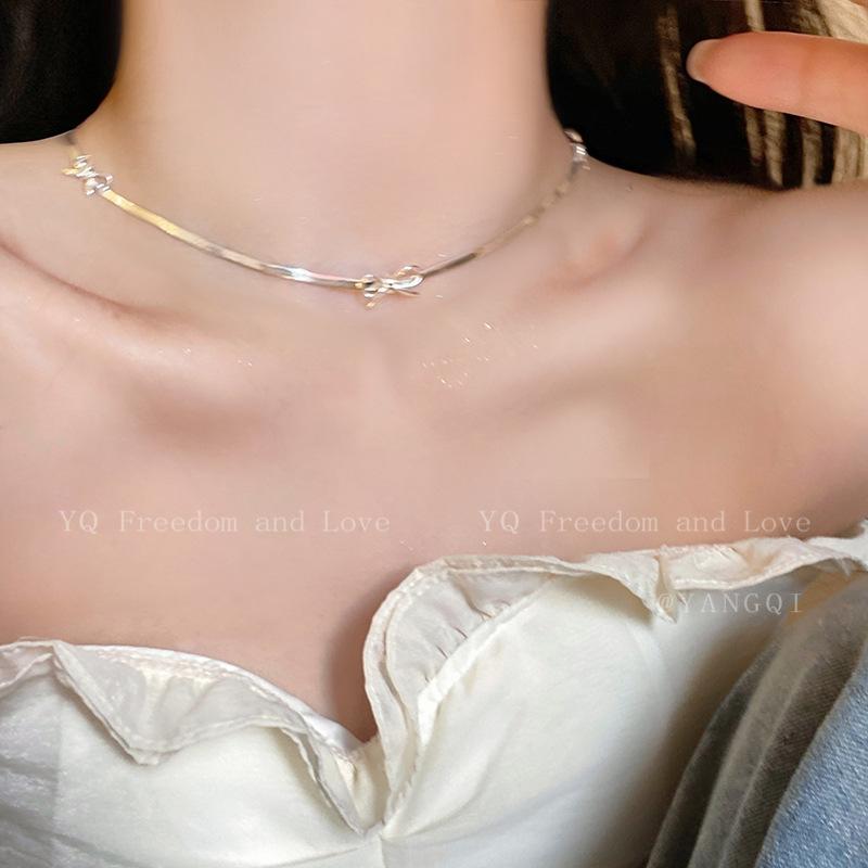 Bow Snake Bone Chain Feminino 2024 Novo Estilo Simples Luz Luxo Alto Nível Clavícula Cadeia Colar Corrente Nicho Design Colar