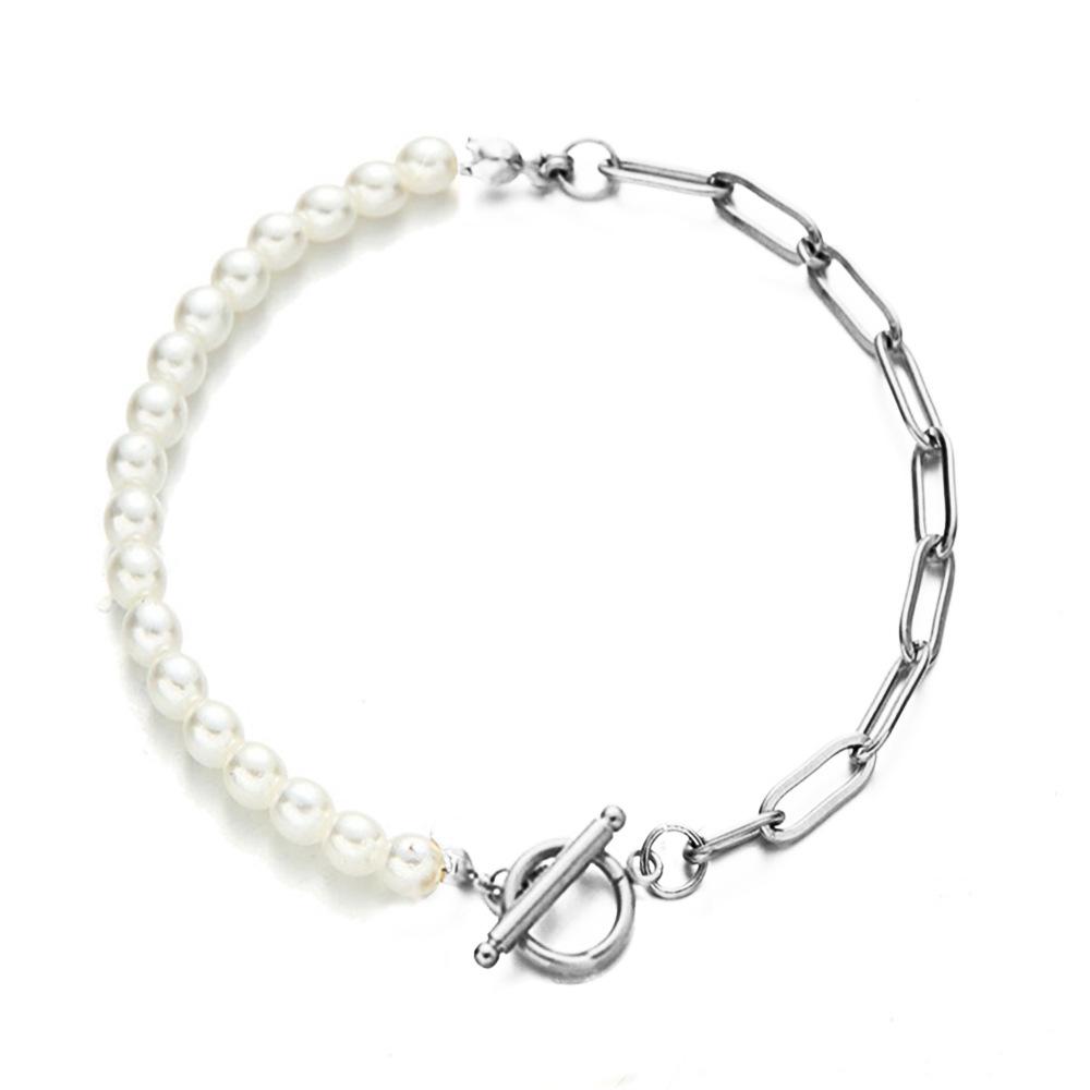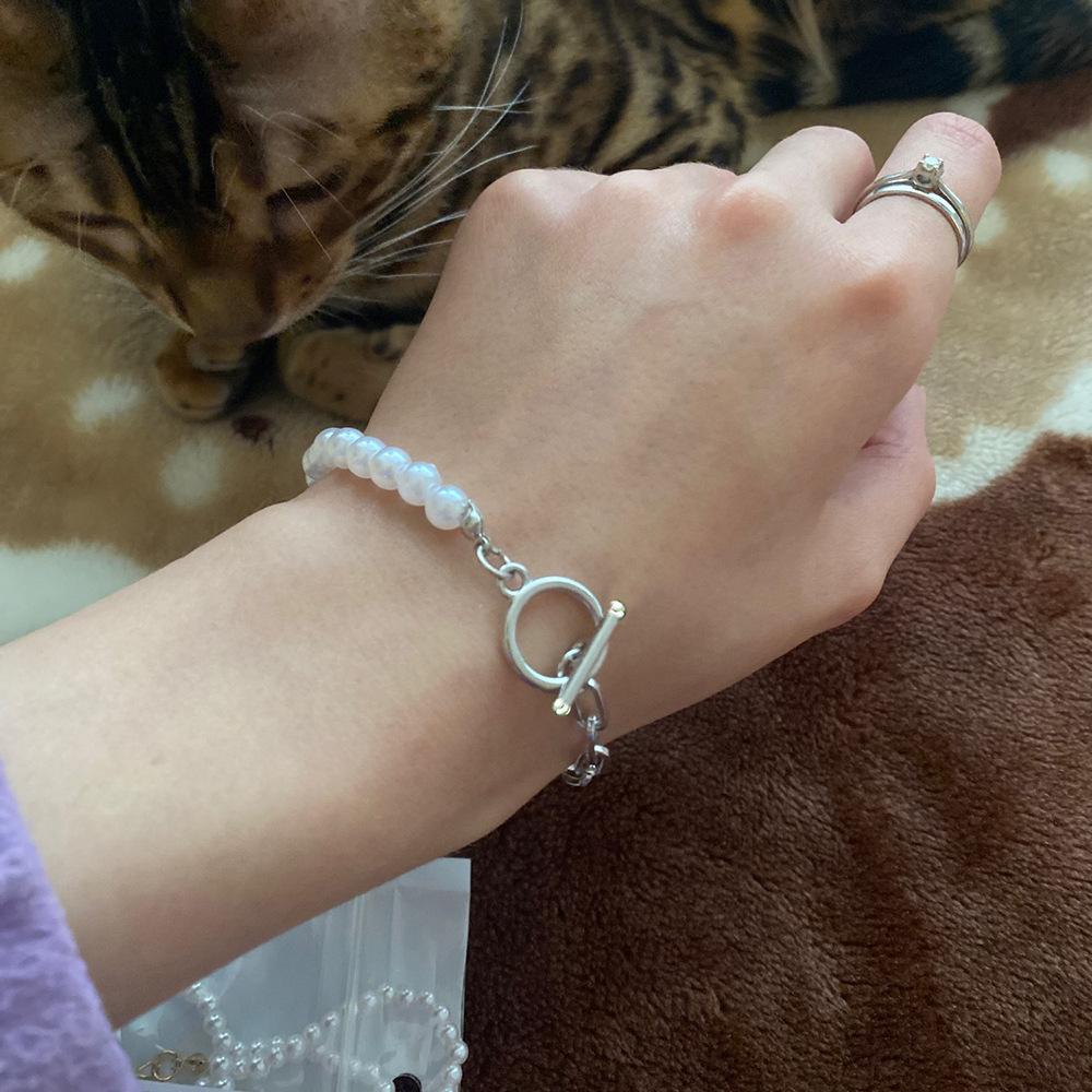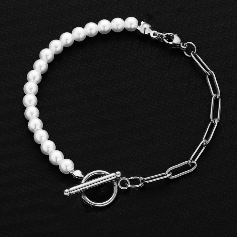 Longrui Moda Transfronteiriça Europeia e Americana Tendência Corrente de Elos Exquisitos Corrente de Pérolas Fivela OT Costura Pulseira Presente de Dia dos Namorados