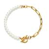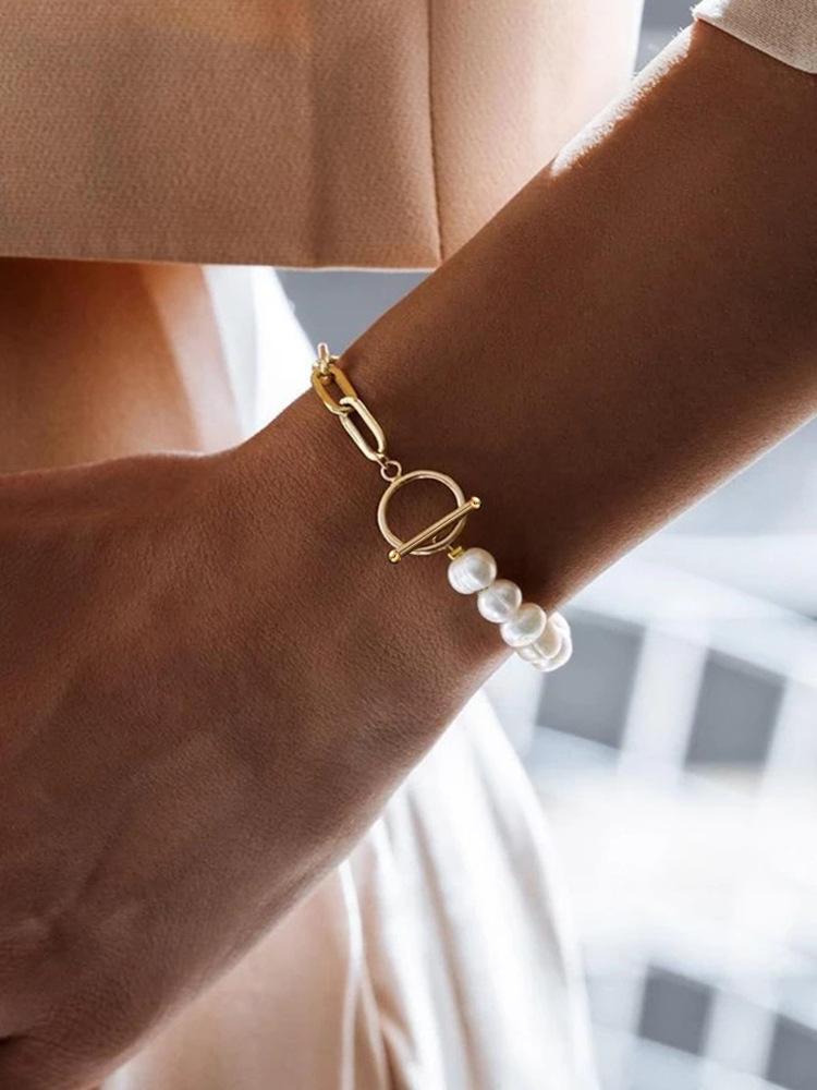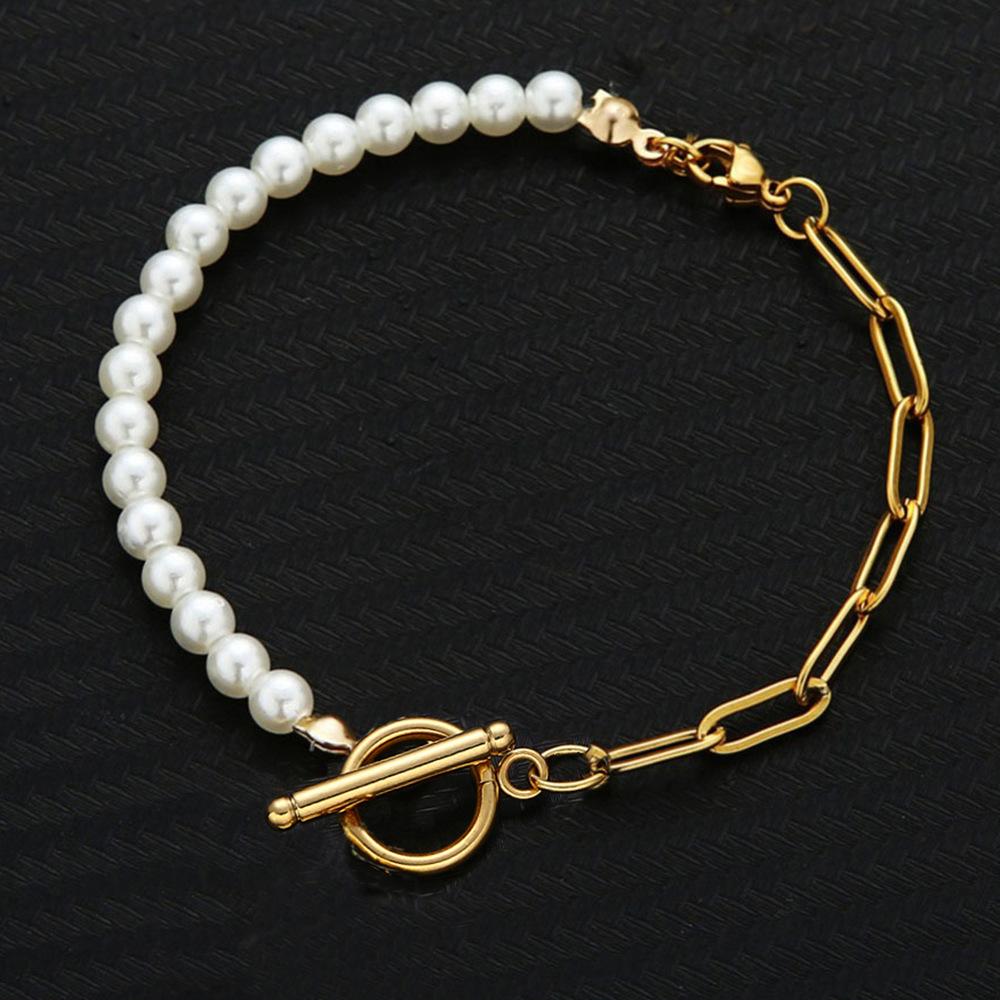 Half Pearl Half U Buckle Bracelet-Gold