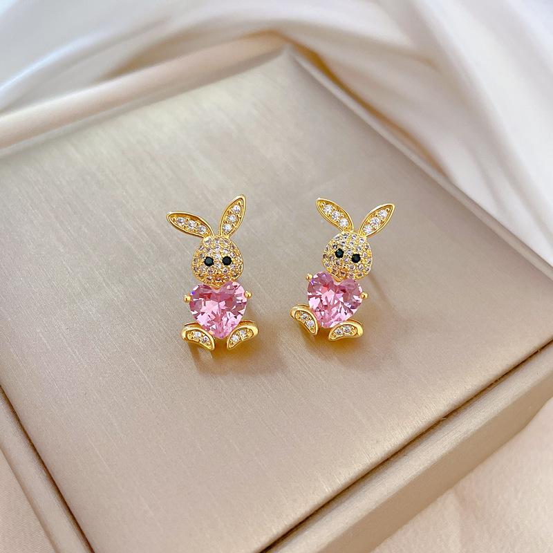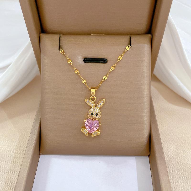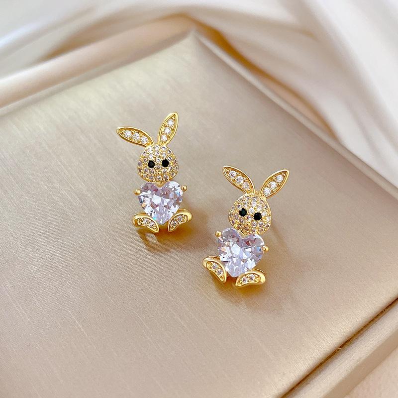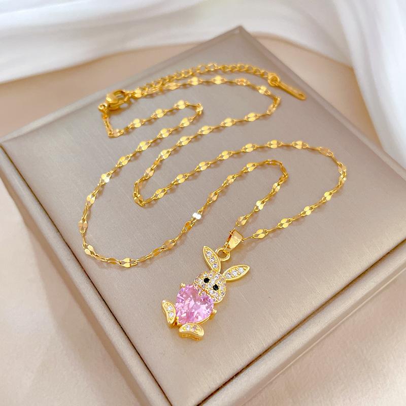 [Aço titânio] Brincos de colar microincrustados combinam com brincos de colar de personalidade elegante e luxuosos de coelho microincrustados