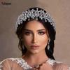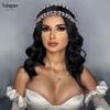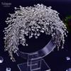Youlapan Hp433 Peça de Cabeça de Casamento Nupcial Europeia e Americana, Acessório de Cabelo de Três Fios Torcidos à Mão com Gota de Água Iridescente e Tiara Cravejada de Diamantes