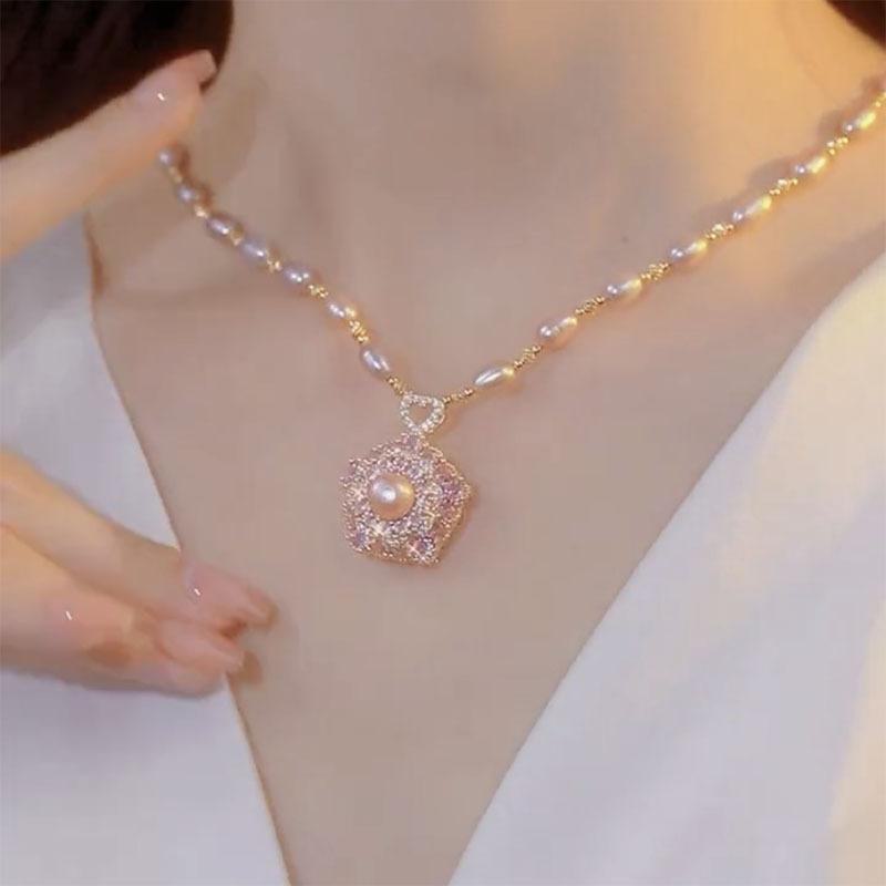 Colar de pérolas de pingente de flor de nicho de luxo leve 2024 Novo estilo popular elegante redutor de idade para todos os jogos Corrente de colar de colar para mulheres