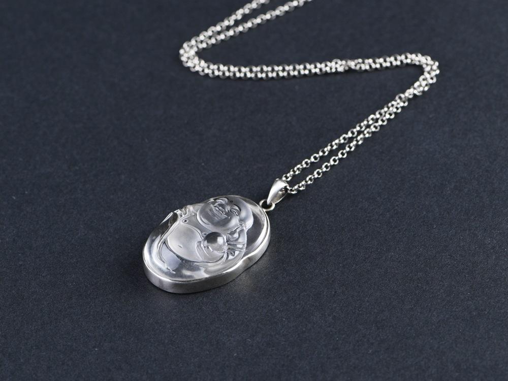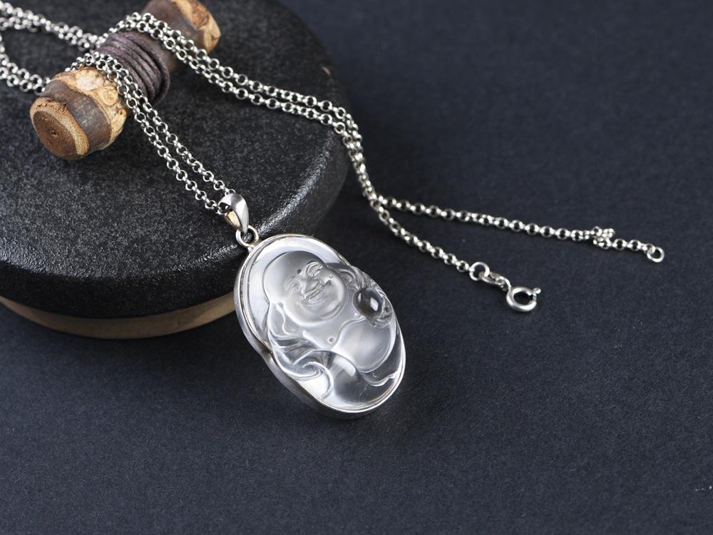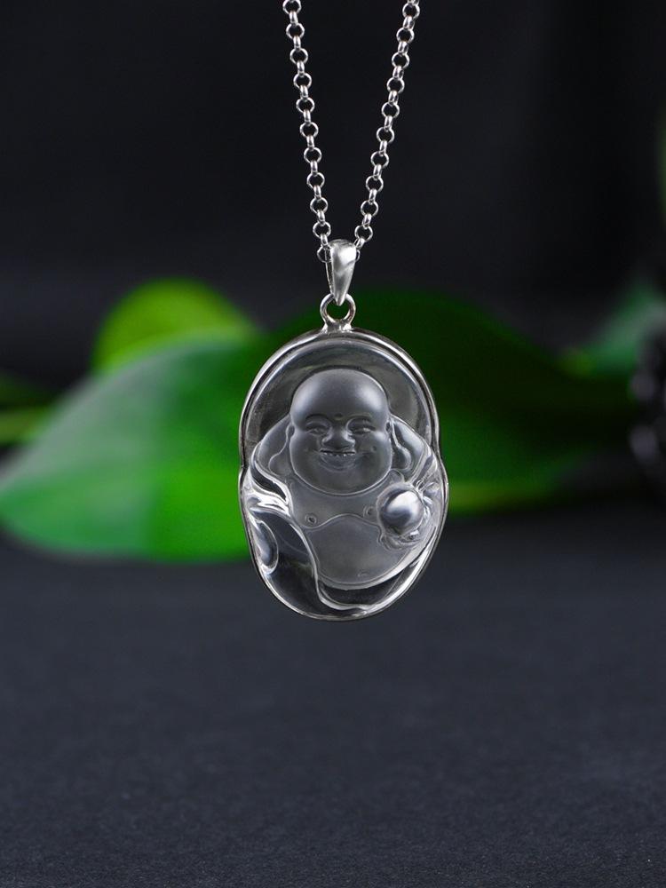 Golden Deer King S925 Vintage Thai Prata Incrustada Cristal Branco Maitreya Pingente Feminino Cabeça de Buda Suéter Pingente Jóias