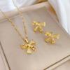 [Aço Titânio] Conjunto Colar e Brincos Luxo Leve Diamante Completo Laço Vazado Personalidade Elegante Banquete Conjunto Colar e Brincos