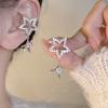 Brinco de estrela de cinco pontas, clipe de orelha, feminino, simples, coreano, elegante, longo, borla, brincos de clipe de orelha sem furos de orelha