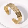 Pulsera abierta retro europea y americana de acero inoxidable chapada en oro de 18 quilates con patrón aleatorio, lujo ligero de alta calidad, simple, moderna, pulsera de acero de titanio