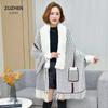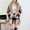 Xale de malha de manga comprida com divisão xadrez outono e inverno, fornecimento direto da fábrica, capa xale poncho de comércio exterior