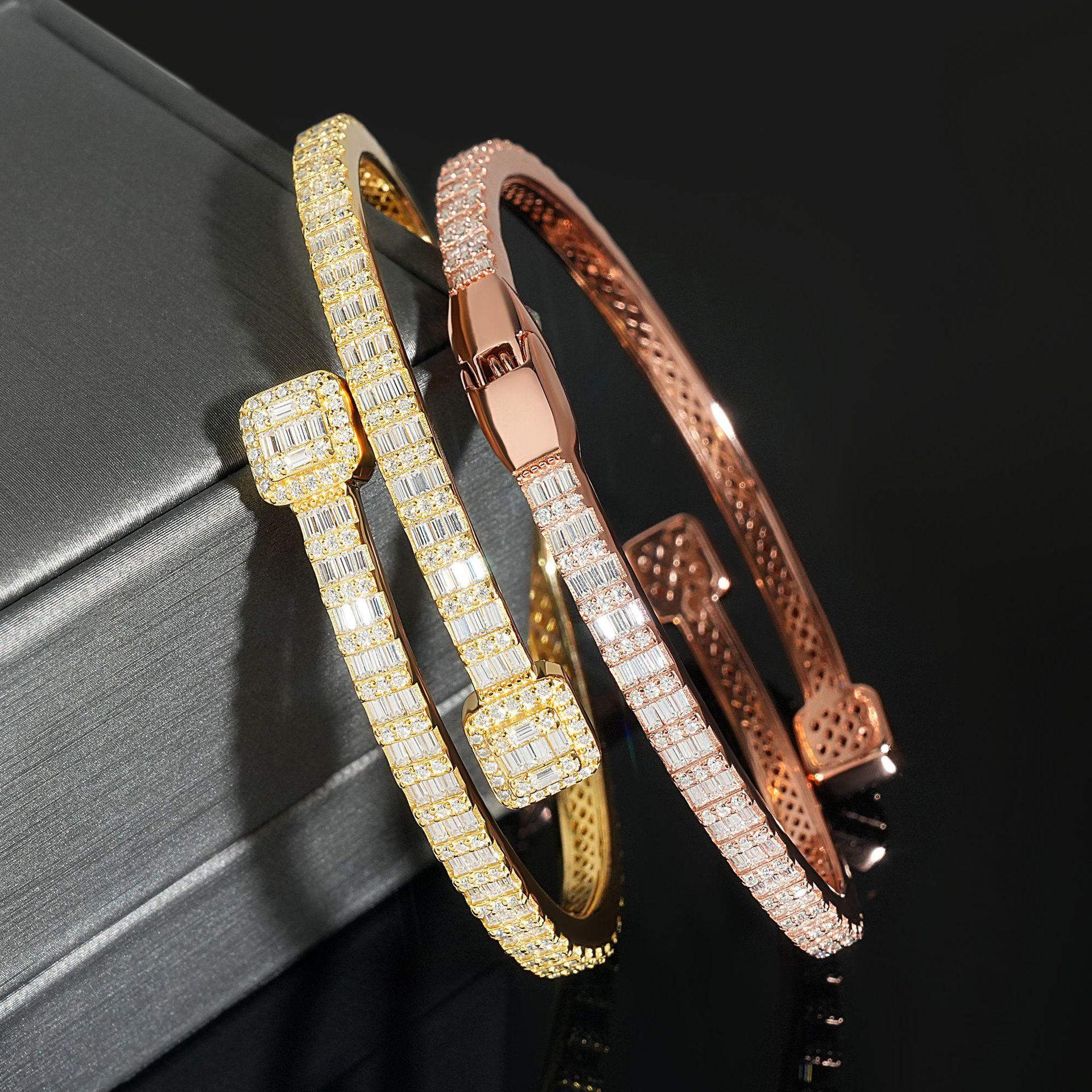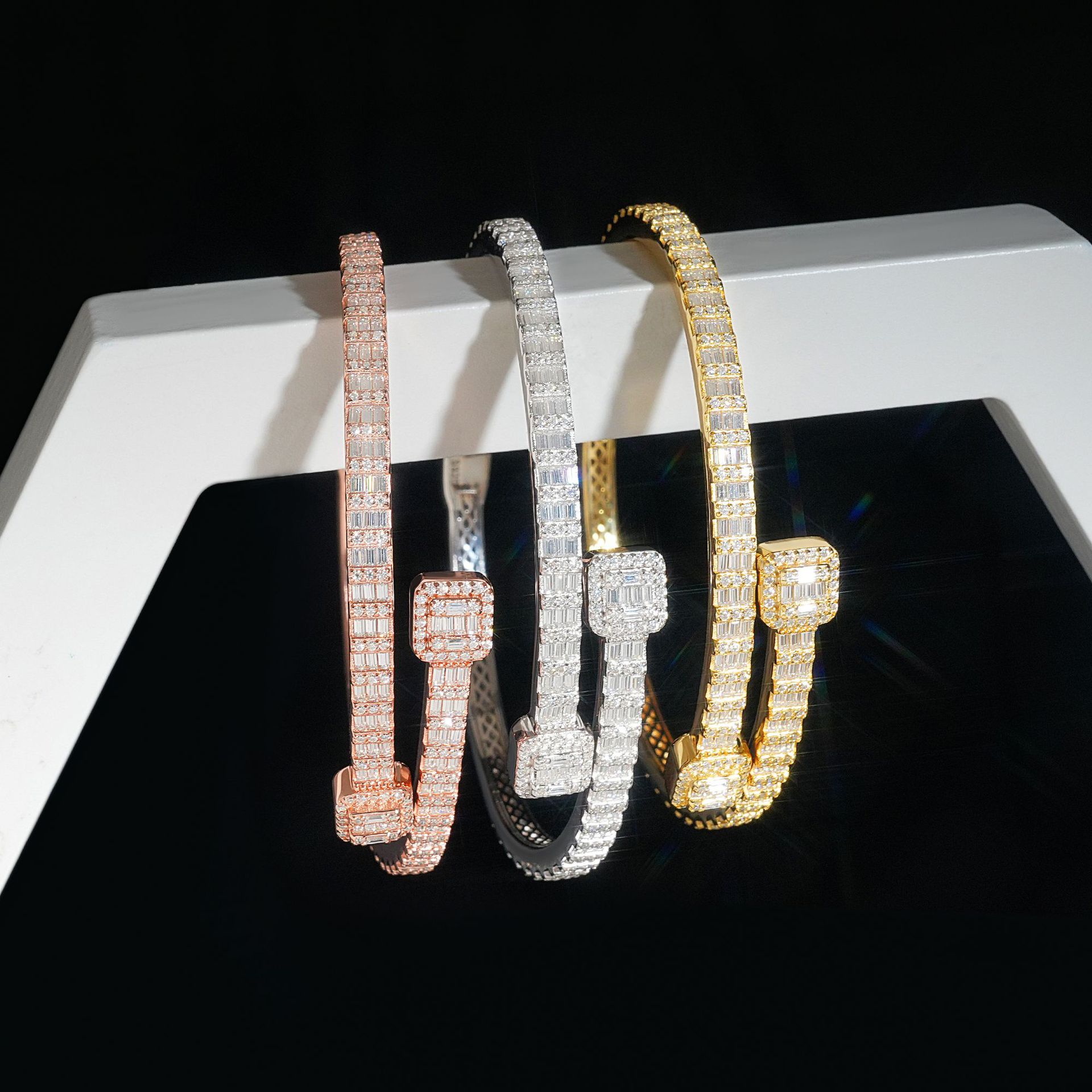 Europeu e Americano Novo Prata S925 Cravejado com Moissanita Cor D Clássico Bracelete Kojia Moda Hip-hop Transfronteiriça Bracelete High-end