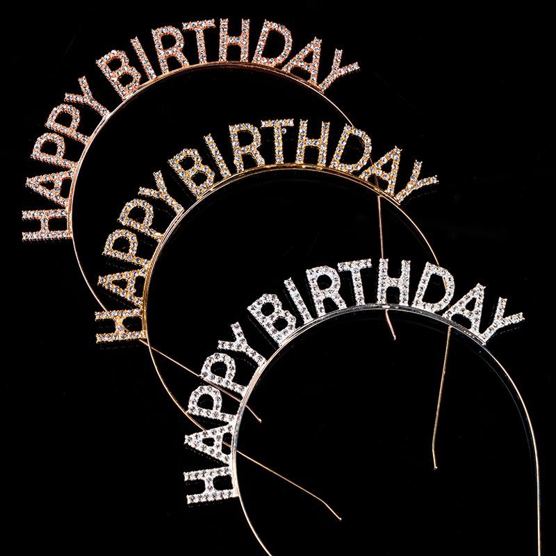 Little Red Book Mesmo Estilo Feliz Aniversário Cabelo Aro Internet Celebridade Aniversário Chapéu Cristal Diamante Conjunto Festa de Aniversário Vestir