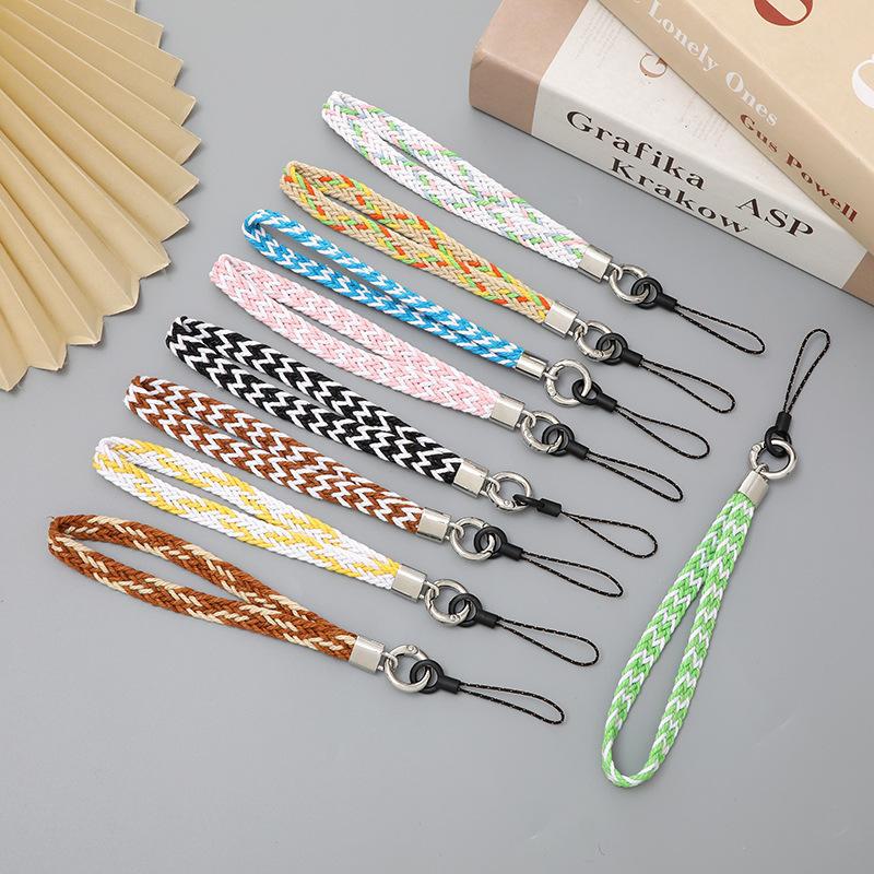 Corrente de celular trançada feita à mão, nova, transfronteiriça, capa de celular, pingente curto anti-perda, alça de pulso, cordão
