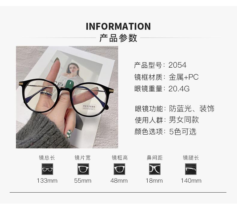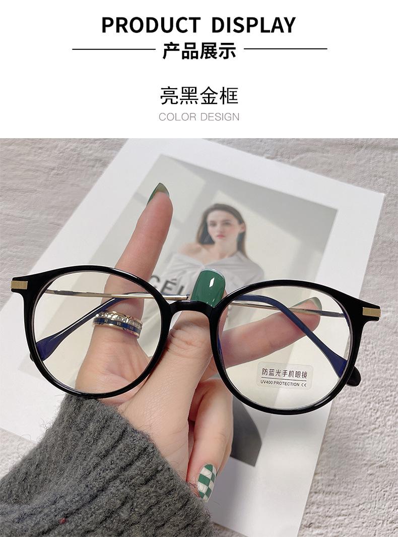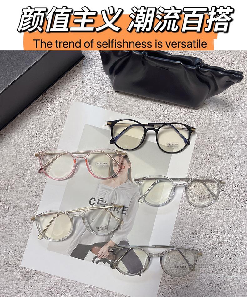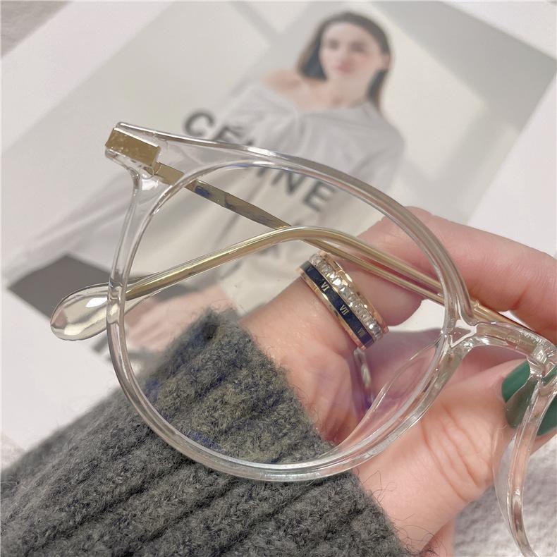 Nova armação redonda para óculos de miopia, armação feminina, tendência da moda, retrô, transparente, espelho plano, estudantes masculinos, arte, armação preta lisa