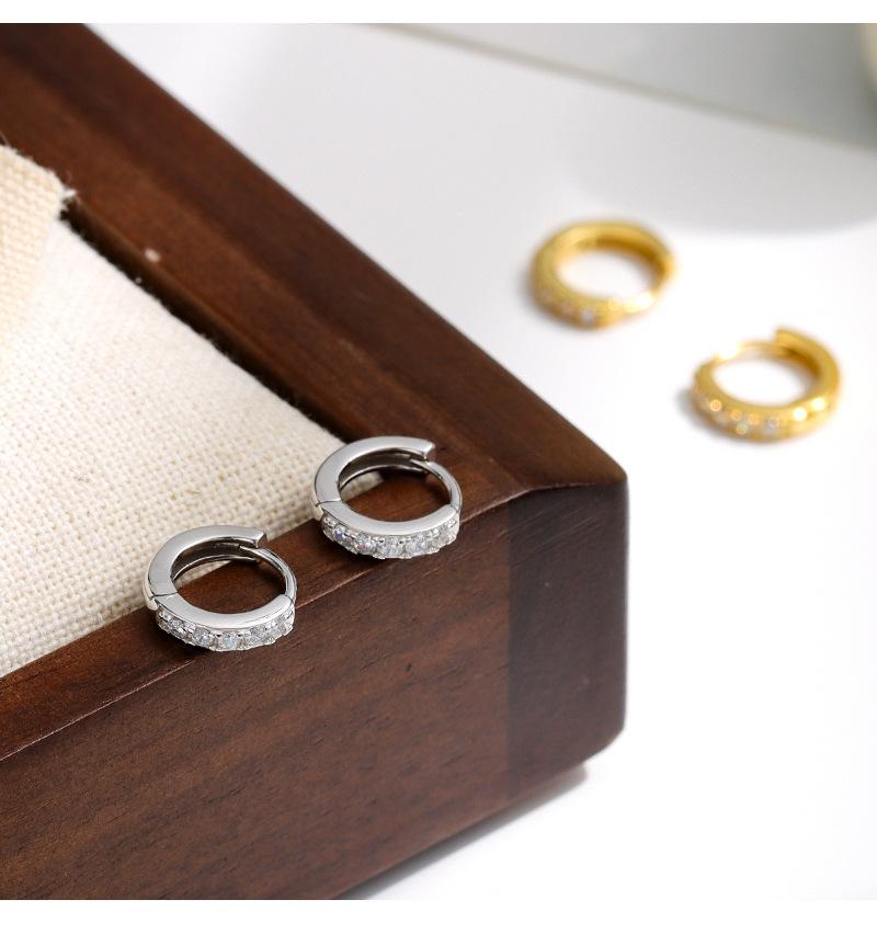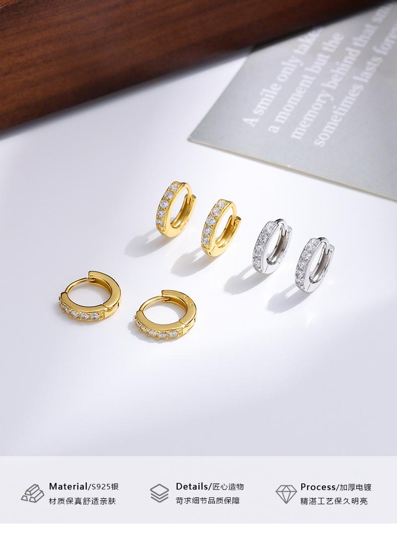 Compre S925 prata esterlina uma fileira brincos de diamante feminino simples moda orelha piercing high-end sentido pequeno temperamento orelha osso anel orelha fivela no atacado no Joom.pro