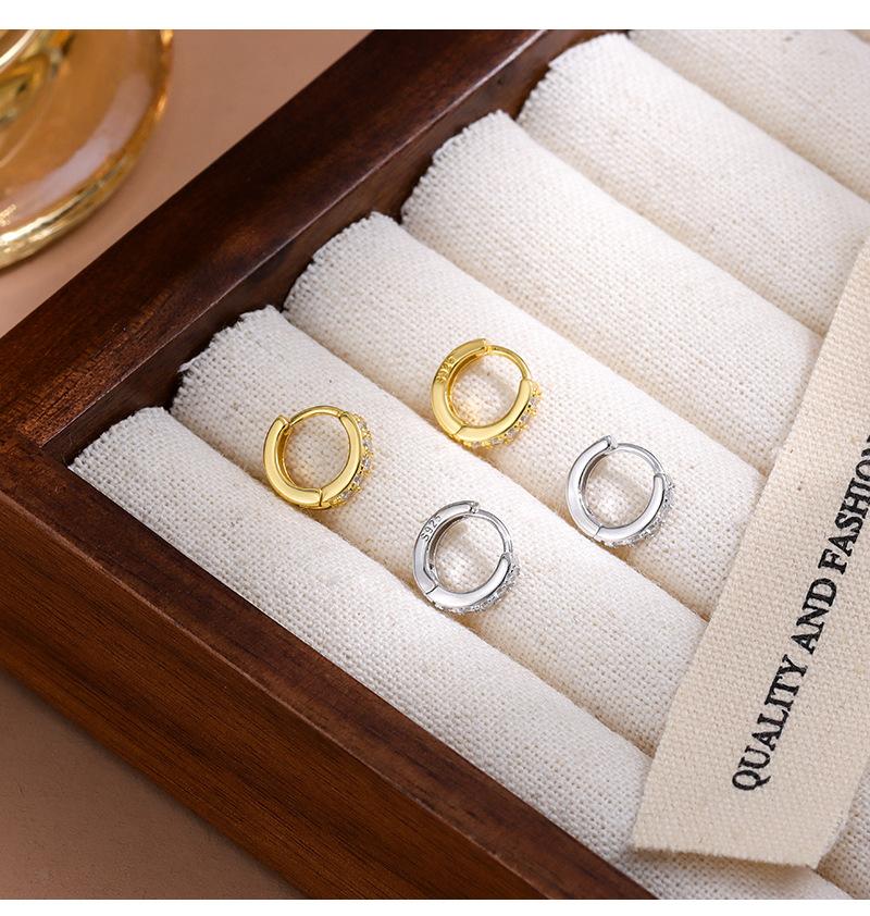 S925 prata esterlina uma fileira brincos de diamante feminino simples moda orelha piercing high-end sentido pequeno temperamento orelha osso anel orelha fivela