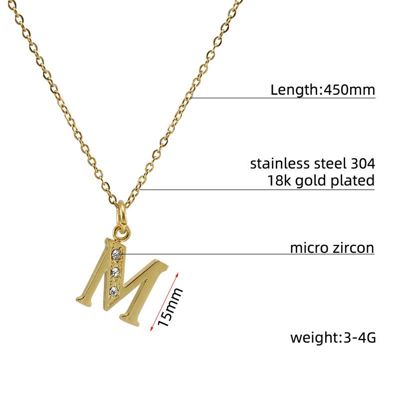 Corrente de clavícula com letras de diamante de aço titânio europeu e americano transfronteiriço 18K moda aço inoxidável 26 colar com pingente de letras em inglês para mulheres
