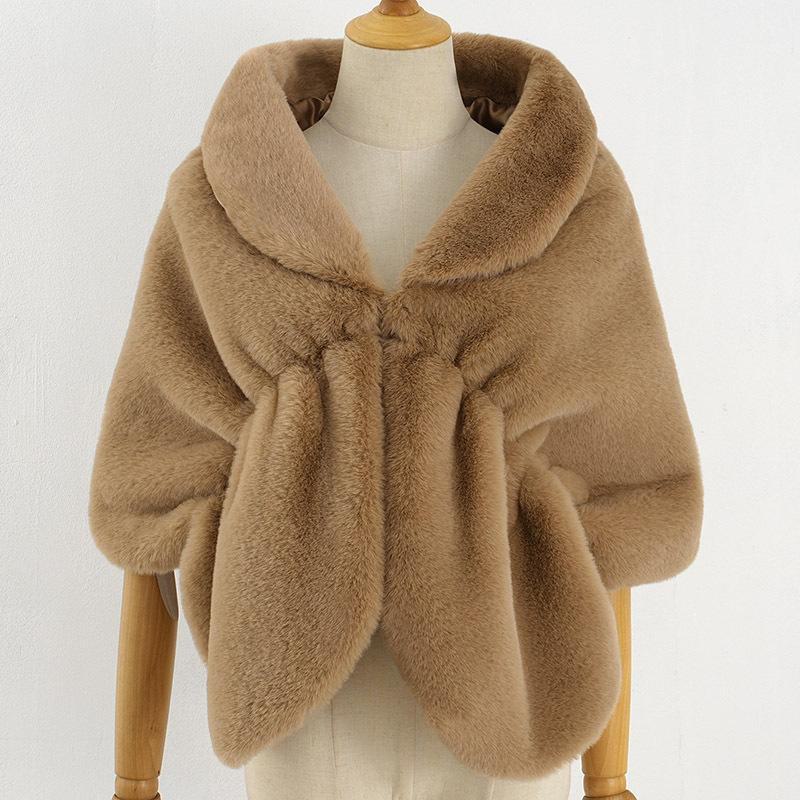 Outono e Inverno Novo Xale Quente Capa Macia de Imitação de Pele de Coelho com Gola Vestido de Noiva Gola de Pele Cheongsam Capa Curta para Mulheres