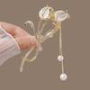 Grampo de Cabelo Refinado com Fecho de Sapo e Borla de Tulipa para Mulheres, Parte de Trás da Cabeça, Luxo Leve, Pedra Olho de Gato, Enrolado, Prendedor de Cabelo, Acessório de Cabeça
