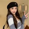 Boina de padrão de textura de estilo coreano outono e inverno grande circunferência da cabeça elegante chapéu de pintor estilo japonês pequeno chapéu octogonal para todos os jogos