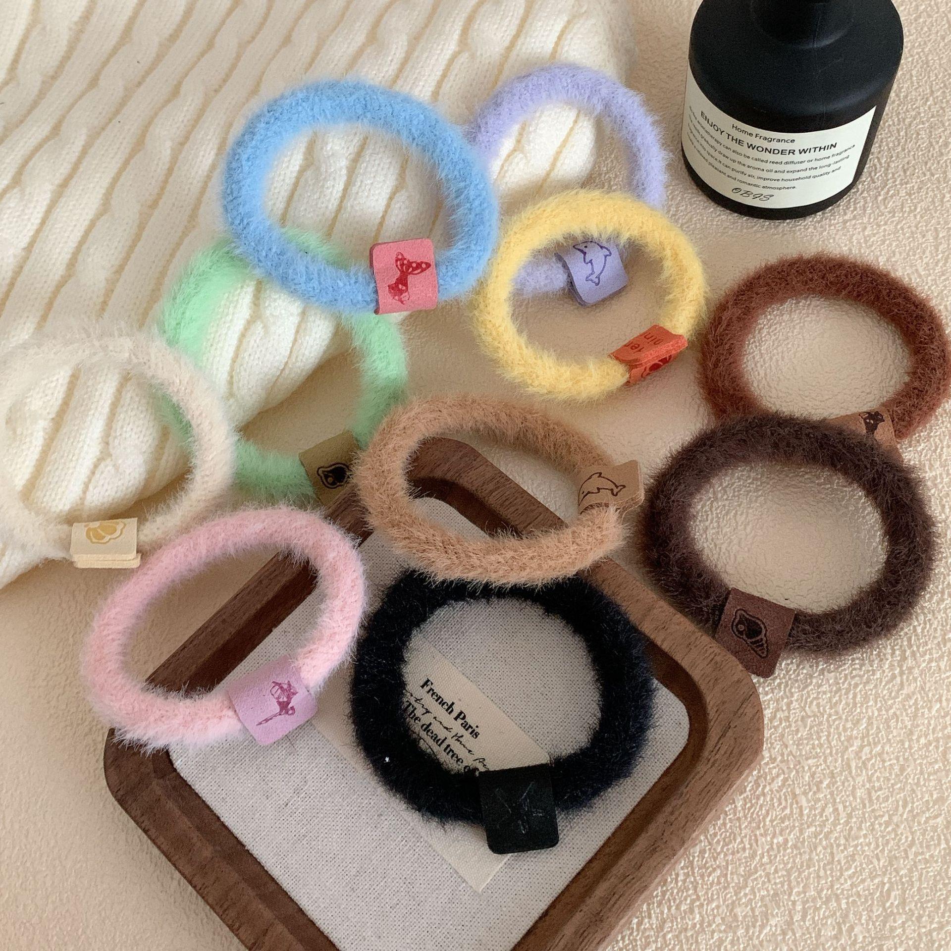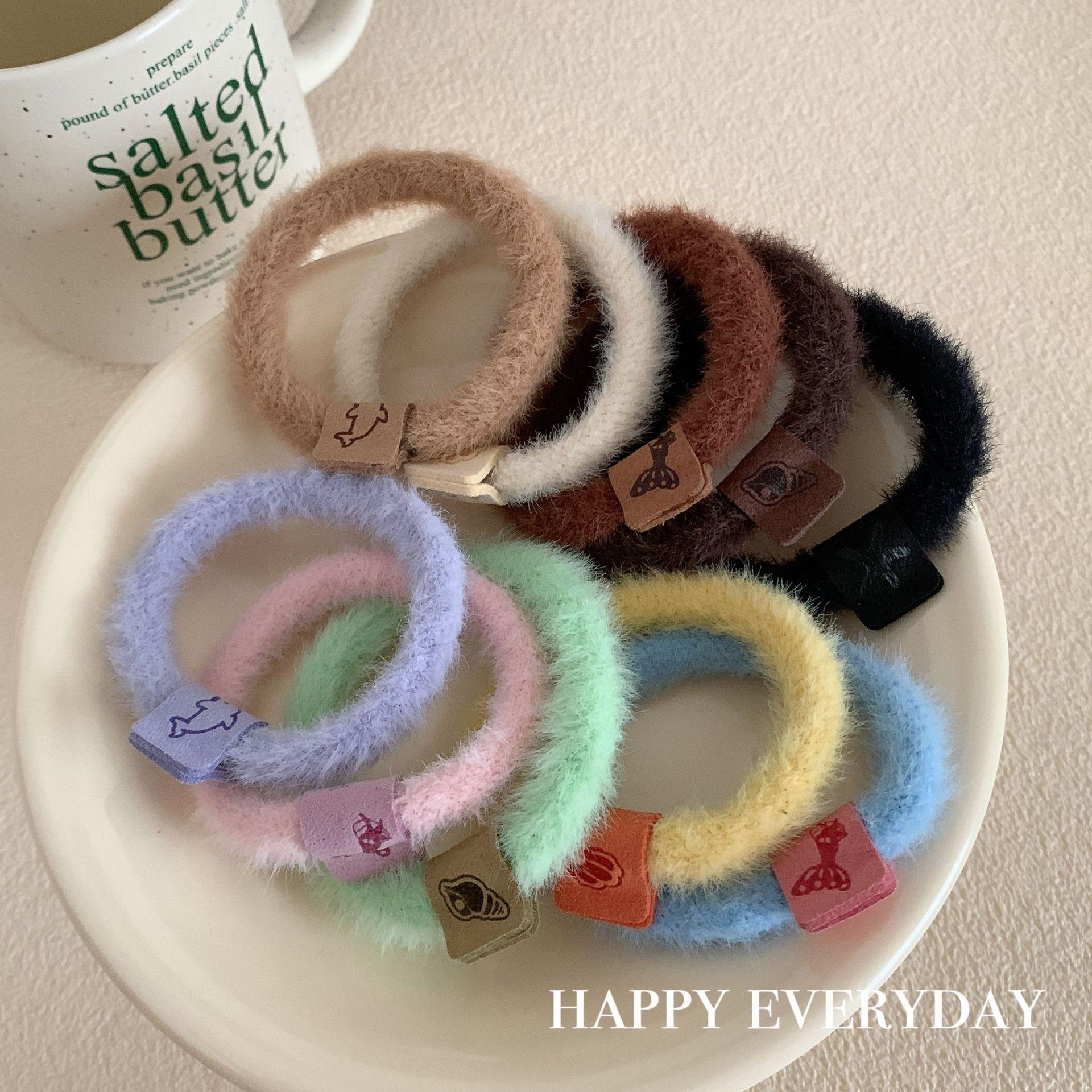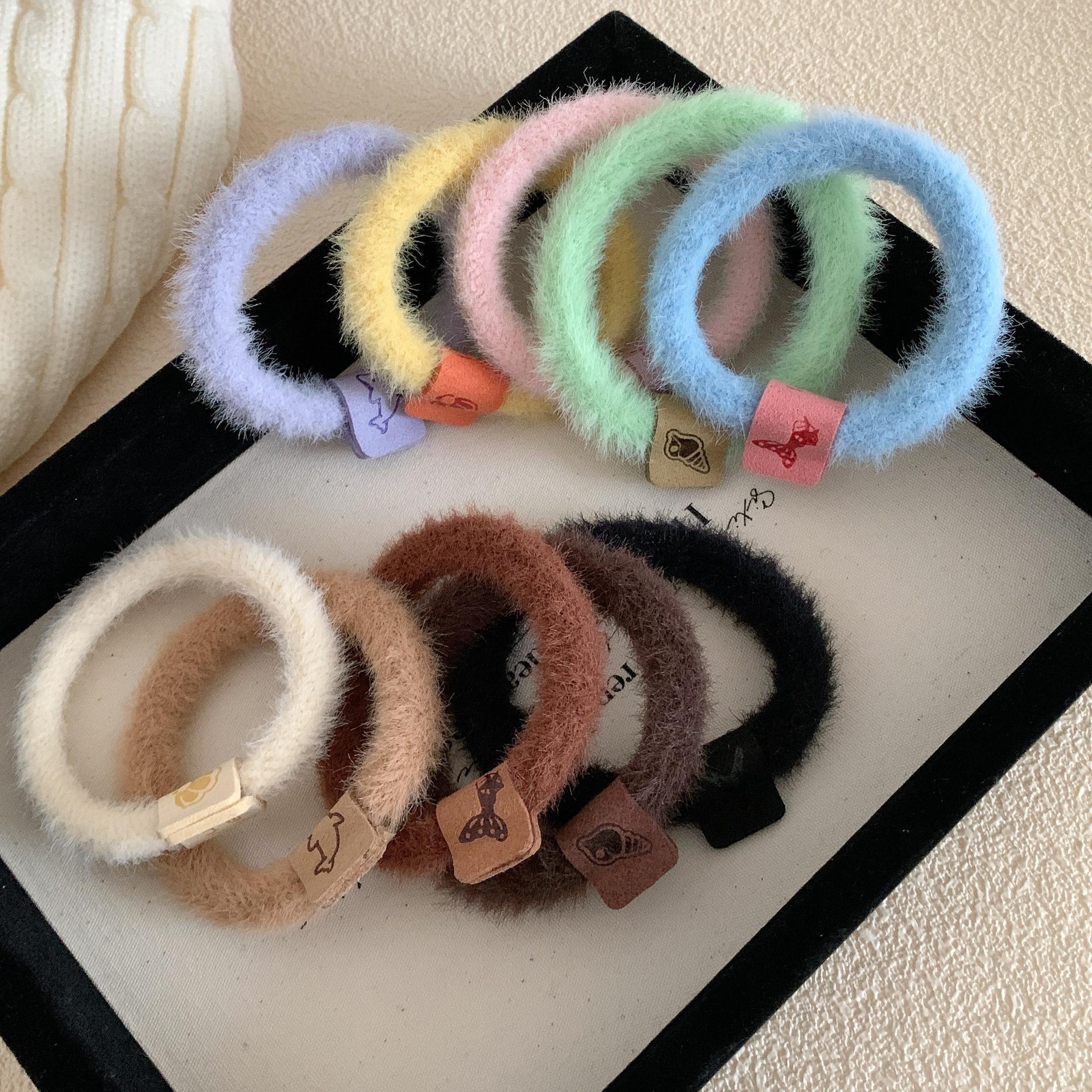 Outono e inverno de pelúcia Maillard cor corda de cabelo menina todos- combinar oceano headband alta elástico banda de cabelo de celebridades da Internet novo
