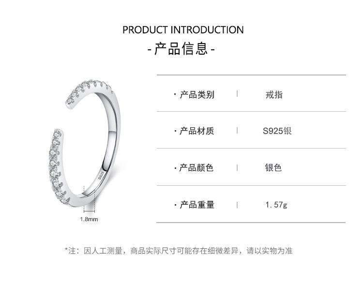 925 prata esterlina aberto micro-incrustado anel feminino europeu e americano elegante moda estilo frio anel de dedo indicador ins anel de design de nicho