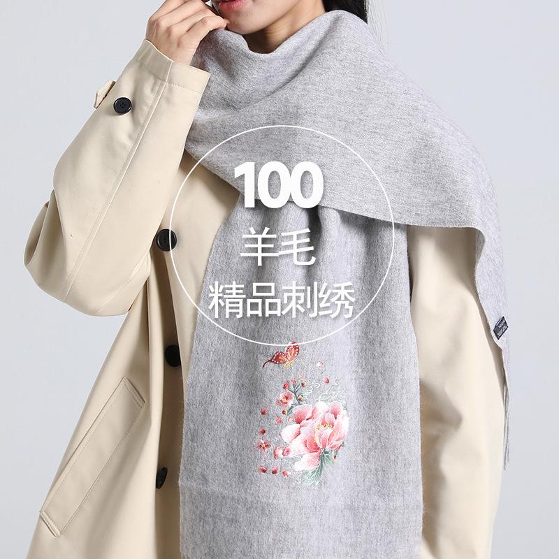 Lenço bordado de lã 100, cor sólida, xale de venda quente, atacado, versátil, outono e inverno, cachecol de pescoço, borla simples, cachecol vermelho51 RMBCompre agora>