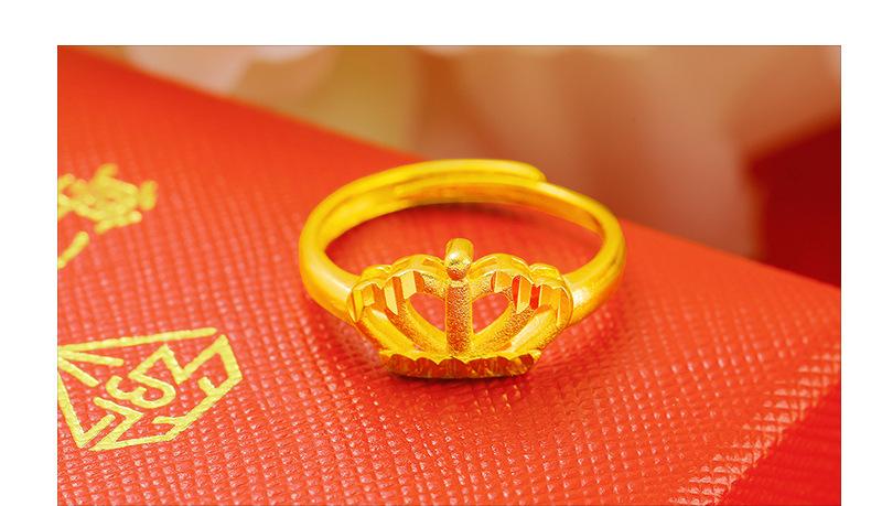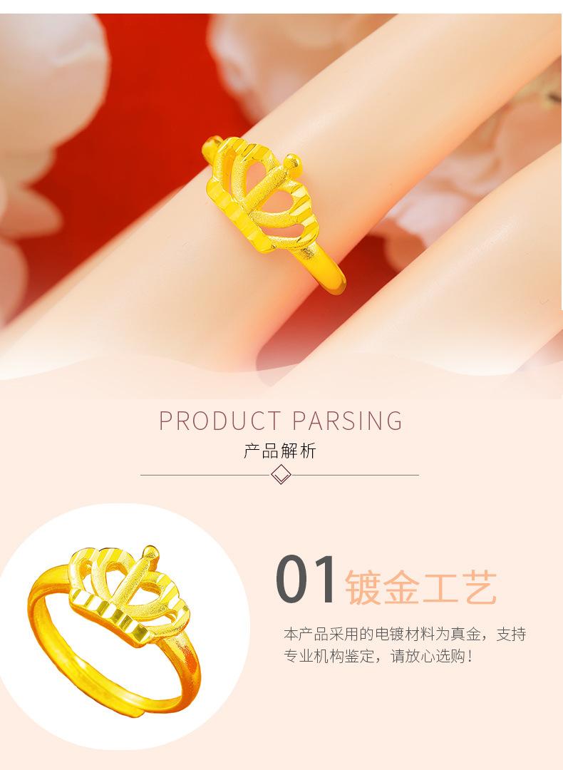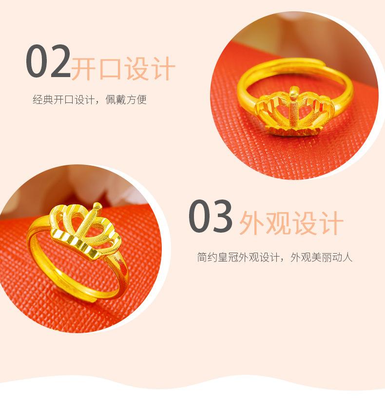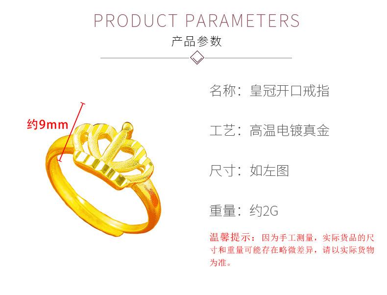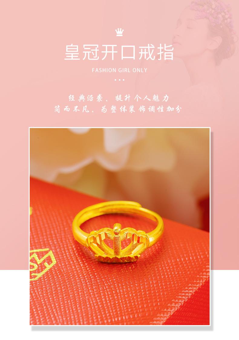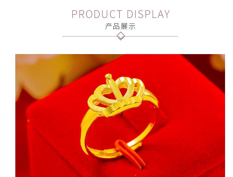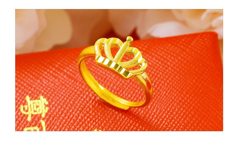 Temperamento jateamento de areia Coroa Dourada anel aberto feminino latão banhado a ouro Rainha para atacadista de Fábrica de Anéis transfronteiriços