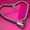 Estilo europeu e americano Moda Estilo cibernético Colar de coração de pêssego de contas redondas Nicho Elegante Destacável Big Love Heart Neck Colar de corrente