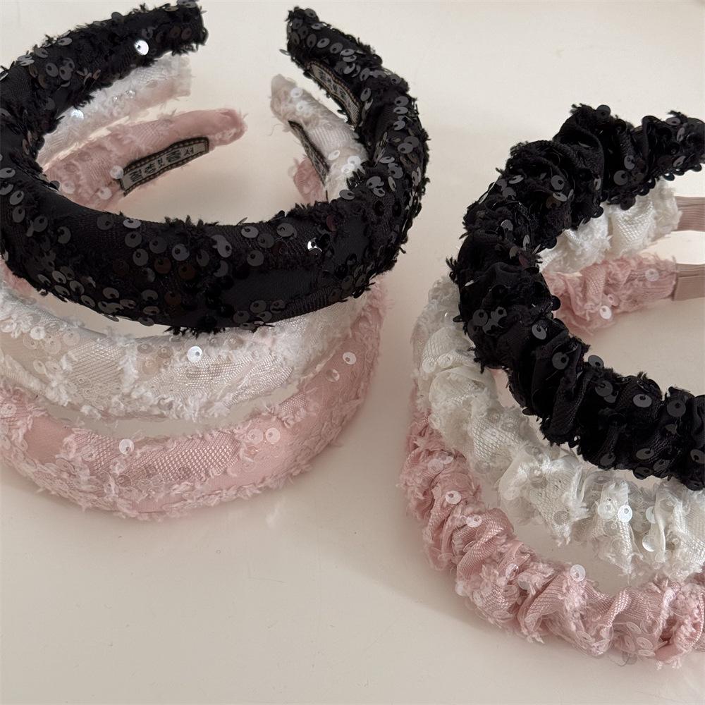 Tecido Mao Mao de lantejoulas estilo coreano, faixa de cabelo plissada, diária, tudo combinado, acessórios para cabelo, carimbo de cabelo, textura, novo estilo