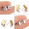 Novos brincos de aço inoxidável coreanos fofos pequenos animais ins fashion personalidade oco abelha animal orelha osso unha