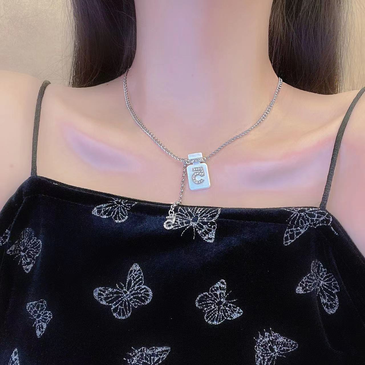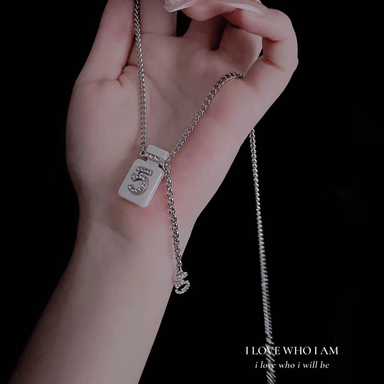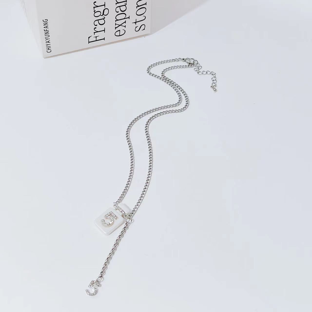 Pingente Quadrado de Alta Qualidade Cheio de Diamantes, Corrente Número 5 Inspirada na Chanel, Colar Longo Corrente para Suéter, Estilo Ins Moda Luxo Leve