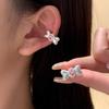 Brincos de orelha com pingente de diamante rosa prateado e doce da série Mint Salt Sweet Brincos de arco de diamante rosa fosco com pingente de osso de orelha Advanced Sense de luxo leve