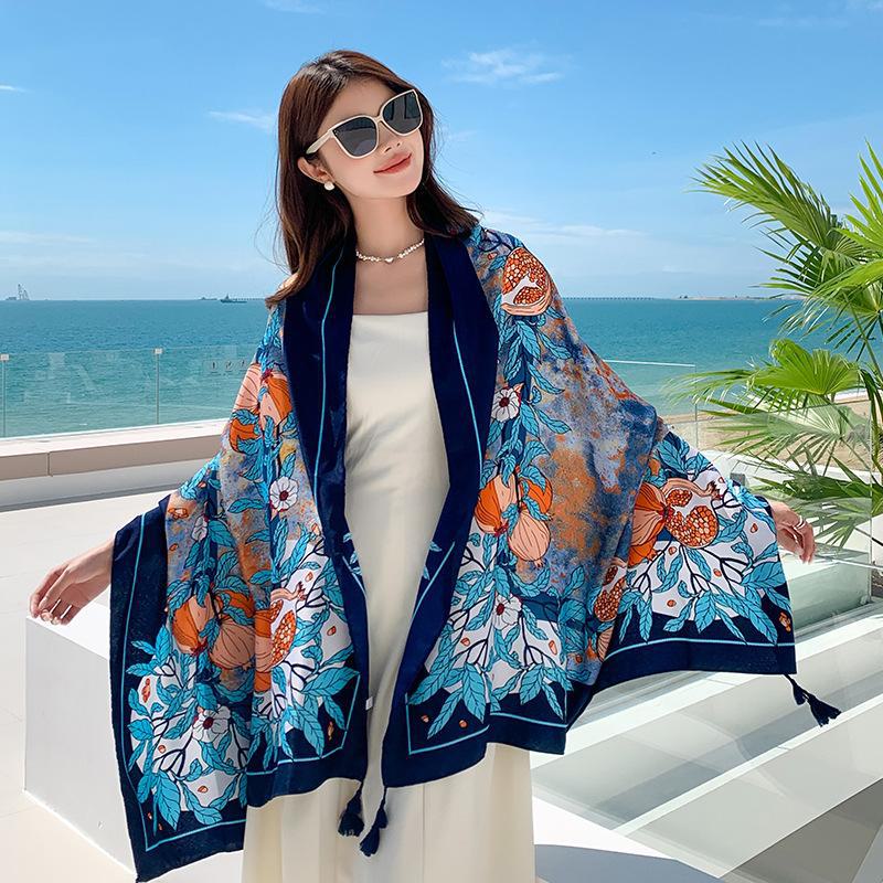 Moda casual colorido romã flor xale ao ar livre jogar confortável respirável versátil personalidade pulôver Cabo xale