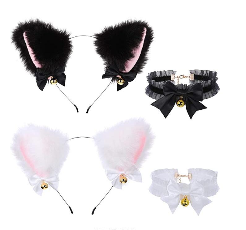 Black bow headband + clavicle chain, White bow headband + clavicle chain, Black Bow Hairband in Black Powder, ...
