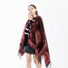 Novos produtos da Amazon, xale xadrez com borlas, moda europeia e americana, capa quente com divisão avançada para mulheres