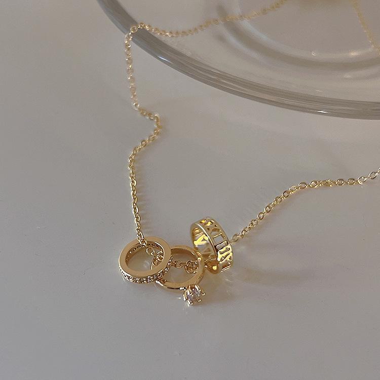 Zircon Metal Ring Necklace Plated with Real Gold