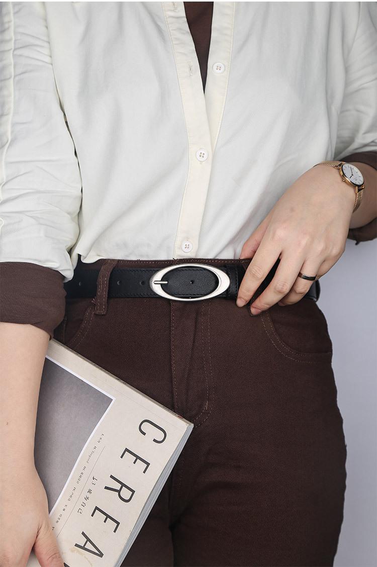 Cinto de couro genuíno para mulheres, senso de alta qualidade, cinto de terno e vestido, simples e versátil, cinto de fivela de pino, local do fabricante