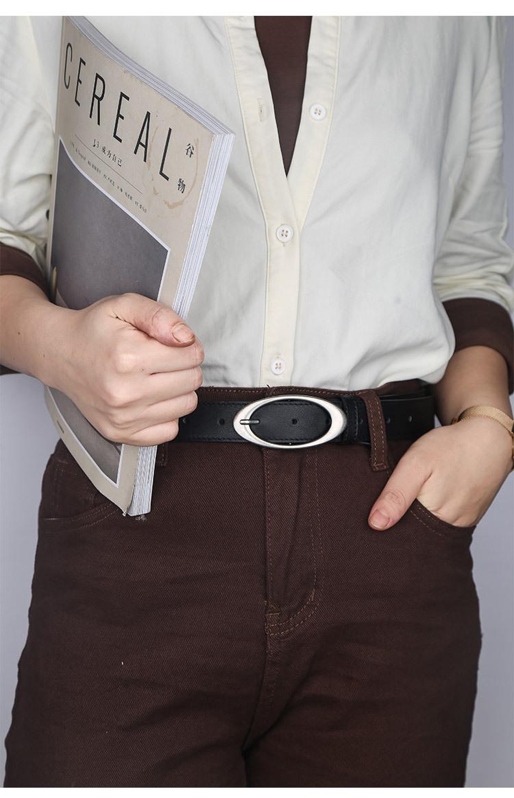 Senhoras novo cinto de couro genuíno de camada superior de couro de vaca ajuste fino jeans fivela de prata retrô cinto de couro genuíno feito à mão em estoque
